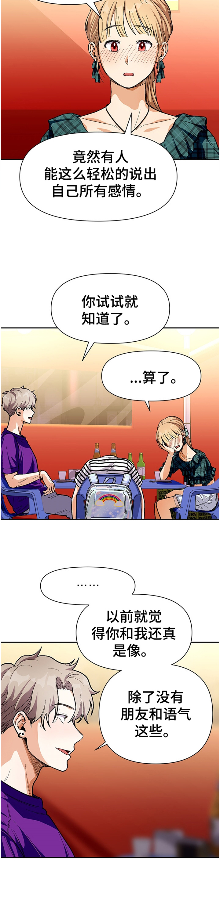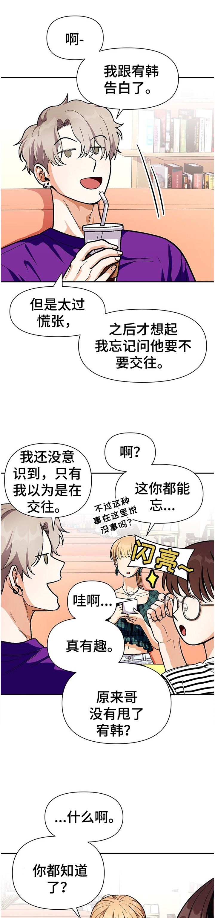 有能看清对方的情感和想法会根据文字显现出能力的主人公。 人生第一次看不见文字的人出现在他眼前! 互相好感快速递进,带着神秘感,两人之间的关系开启了序幕。