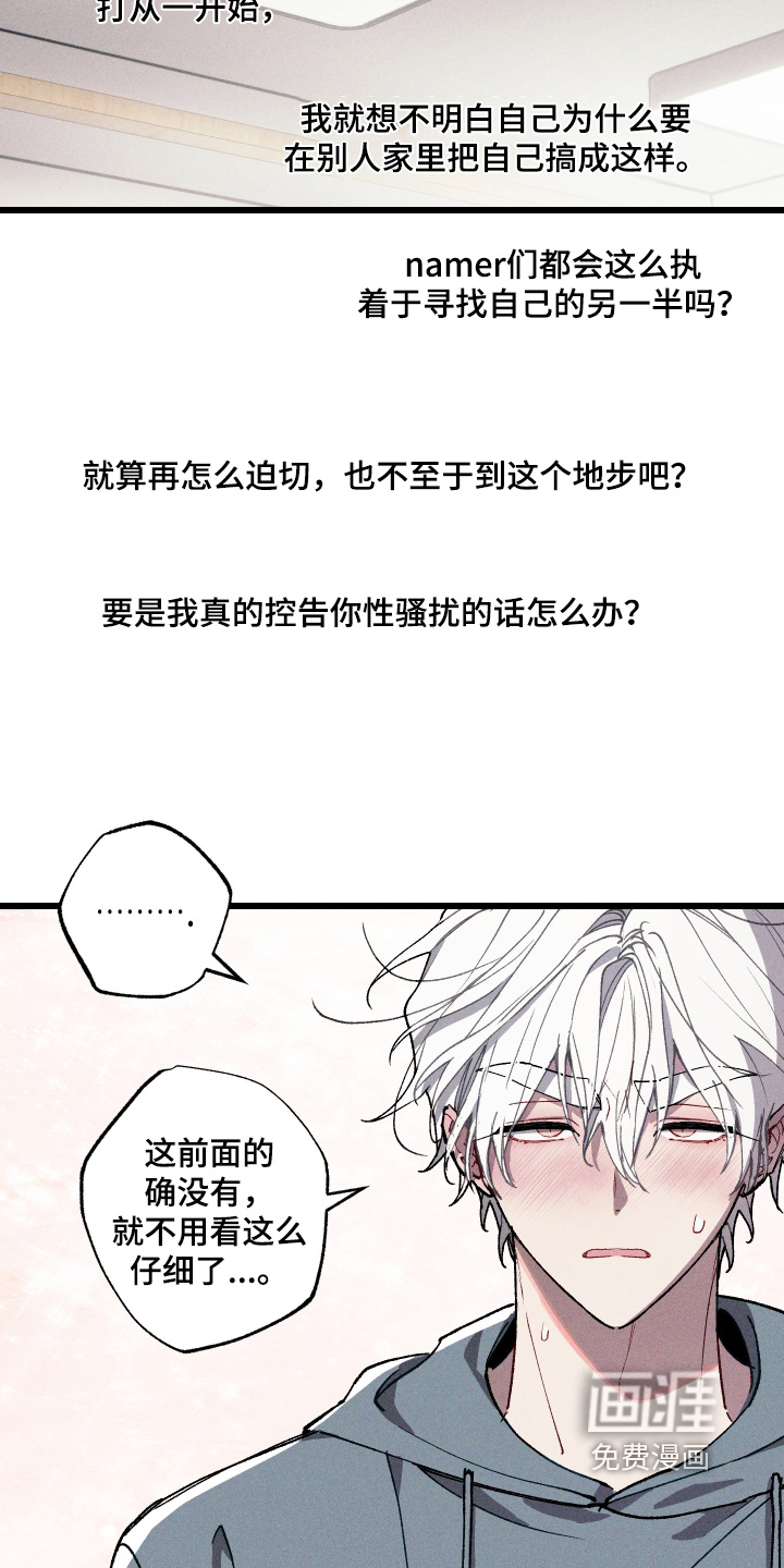 “我怎么会在一个和我不怎么亲近的同学家里表演脱衣秀呢?” 作为一个普通的韩国男孩no namer白翰英,在大学里遇到了名叫柳清玄的Namer。 柳清玄对和自己身上的名字同名的白翰英产生了极大的兴趣,开始跟踪他。 在柳清玄的纠缠下,白翰英为了证明自己是no namer,在柳清玄面脱衣自证,但… “如果能回到过去,我绝对不会再犯傻,做出这种提议。”