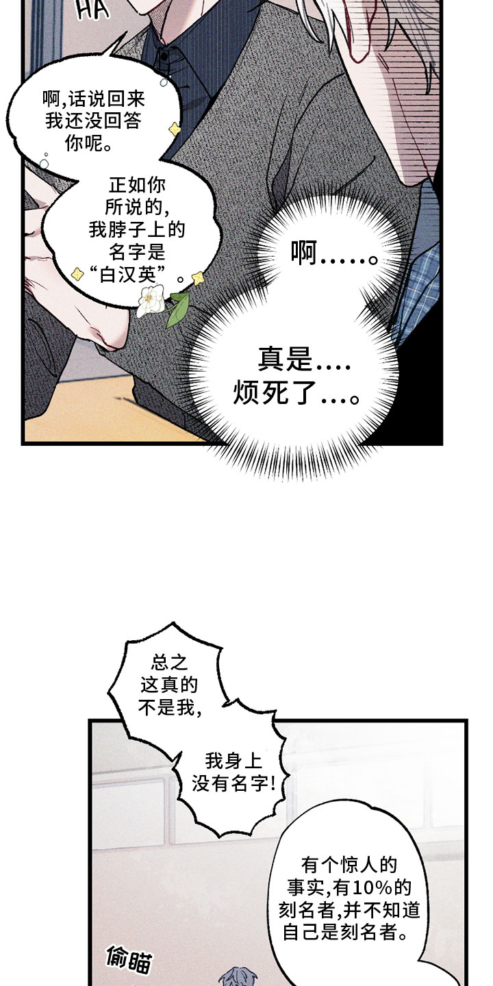 “我怎么会在一个和我不怎么亲近的同学家里表演脱衣秀呢?” 作为一个普通的韩国男孩no namer白翰英,在大学里遇到了名叫柳清玄的Namer。 柳清玄对和自己身上的名字同名的白翰英产生了极大的兴趣,开始跟踪他。 在柳清玄的纠缠下,白翰英为了证明自己是no namer,在柳清玄面脱衣自证,但… “如果能回到过去,我绝对不会再犯傻,做出这种提议。”
