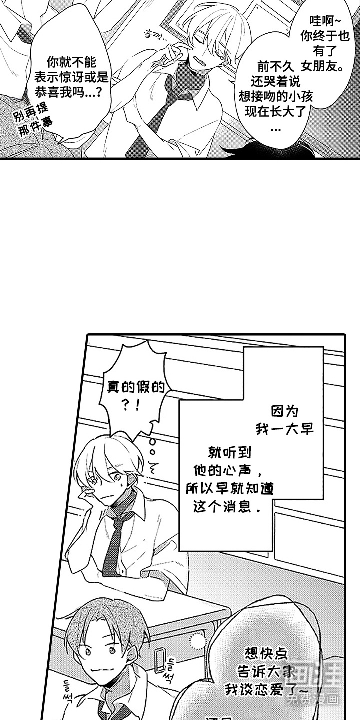 能够听见别人心声的东田,因为嫉妒比自己更受欢迎的青山,于是想要找出对方的弱点。而在得知青山没有接吻的经验时,东田仿佛发现了新大陆一样,开始主动教青山应该如何接吻..