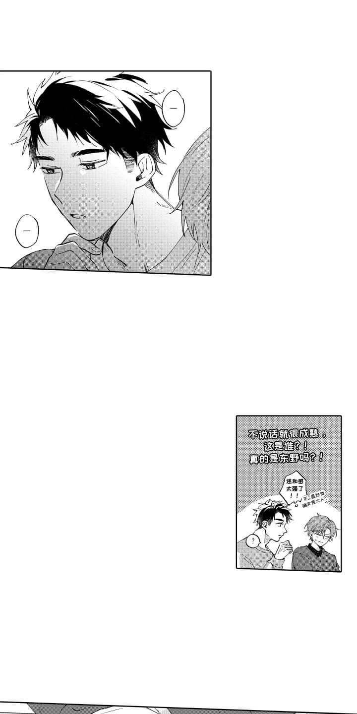 东野在朋友博武的婚礼上遇见了一个躲在洗手间哭泣的男孩。男孩控诉东野撮合了博武和新娘,让他的暗恋无疾而终。过了几天两人在车站遇见,男孩向东野道歉。两人逐渐熟络起来。而东野的体贴和温柔让男孩逐渐走出了失恋的痛苦……