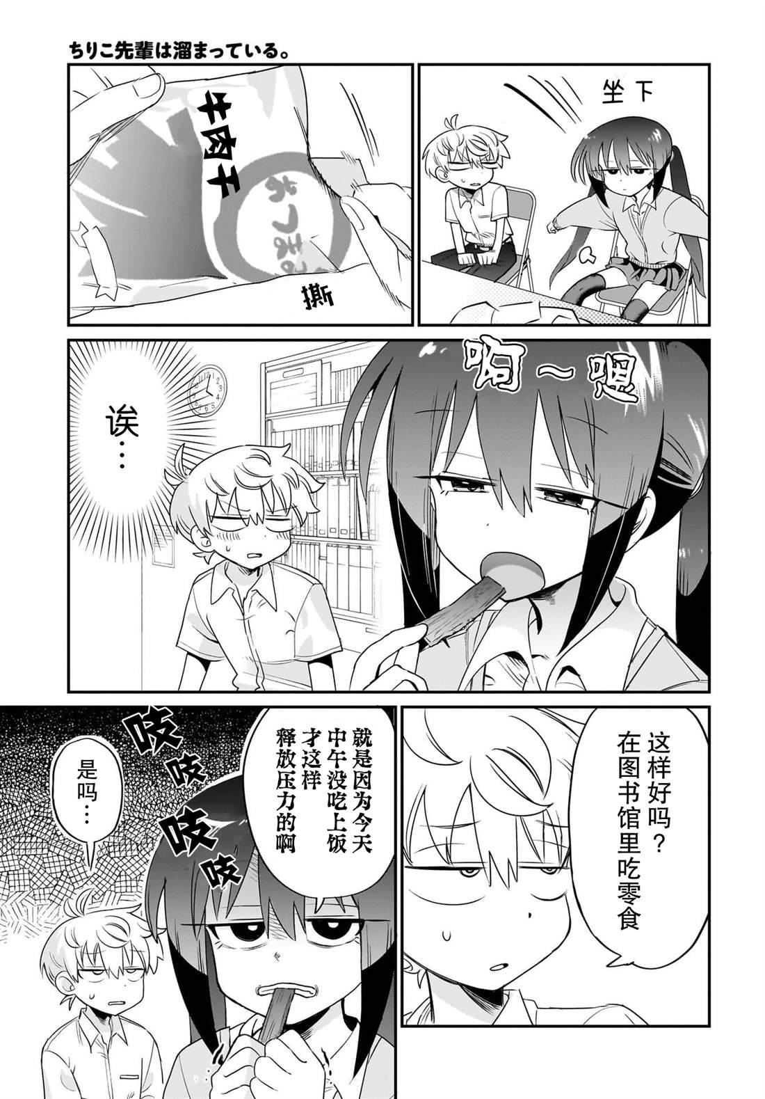 在压力经常累积的现代社会,人们找到自己的放松方式。考试成绩不好的的场诚决定通过“去卡拉 OK 唱个爽”的方式来缓解压力,但是同为图书管理员的“积攒得太多的学姐”卯月千里子,她发散压力的方法却有些奇怪。