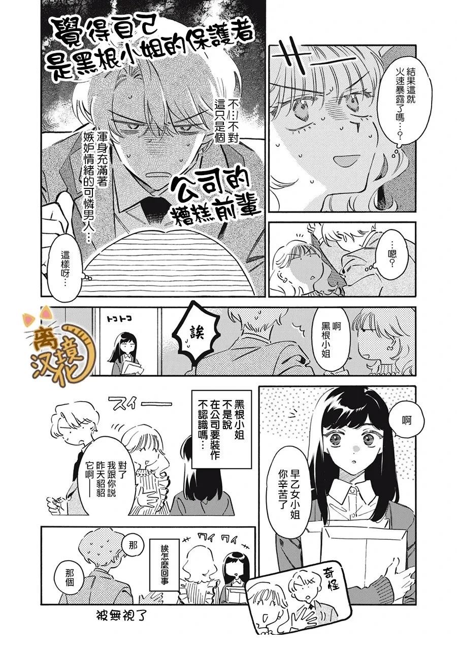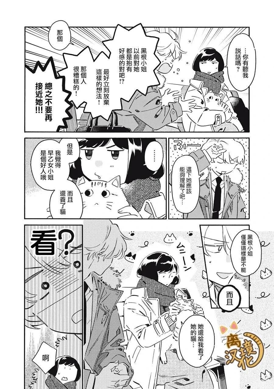 好好先生北大路卫被称作“营业部的王子大人”,在公司里有著很高的人气。 而同事黑根小姐则总是沉默寡言不太合群经常被找茬,是与北大路卫相反的人。 某一天,大路在下班回家途中的公园目睹了黑根小姐在照顾猫咪, 而且看起来非常心的样子——!?