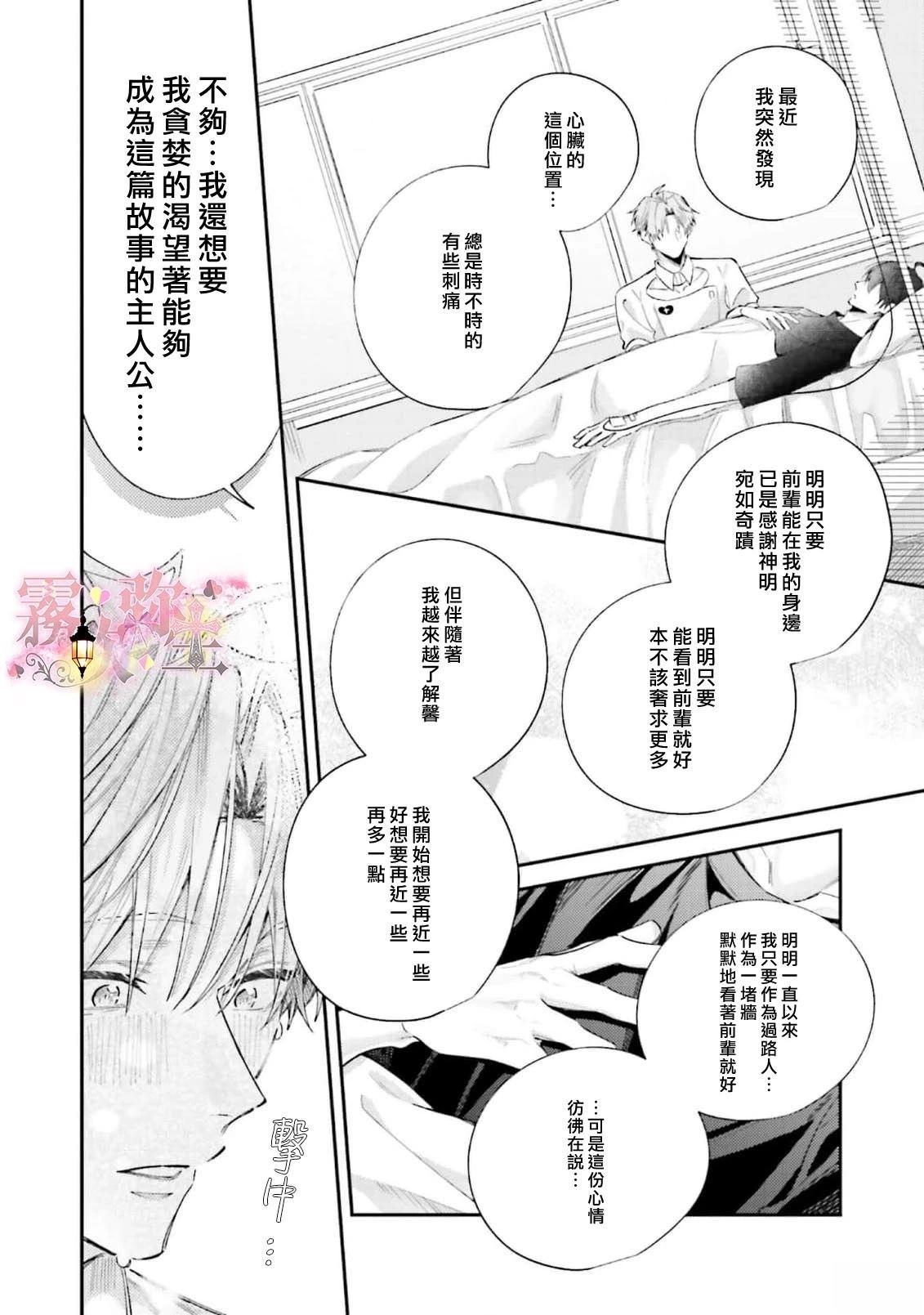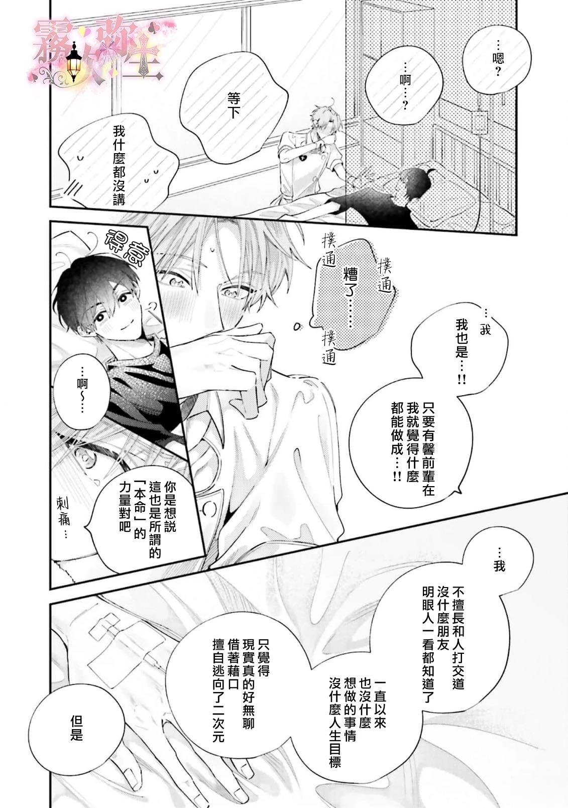 大学生月野谅在烦恼著。「——我是不是喜欢男人?」 因为想踏出第一步,因此申请参加了gay的小组「北极星」,当天,在和对方去酒店时...那一刻却感到了害怕。 突然,感觉在哪里见过的帅哥出现了。 谅被北极星的帅哥成员·慎士警告,「别再来这里了 」然后让他回去了。 在避免了和素不相识的对象做爱于是[]是放心了的转眼间,翌日,弄清了慎士是就读同一间大学的前辈的事实。 谅尝试向帮了自己的慎士道谢——[-折叠]