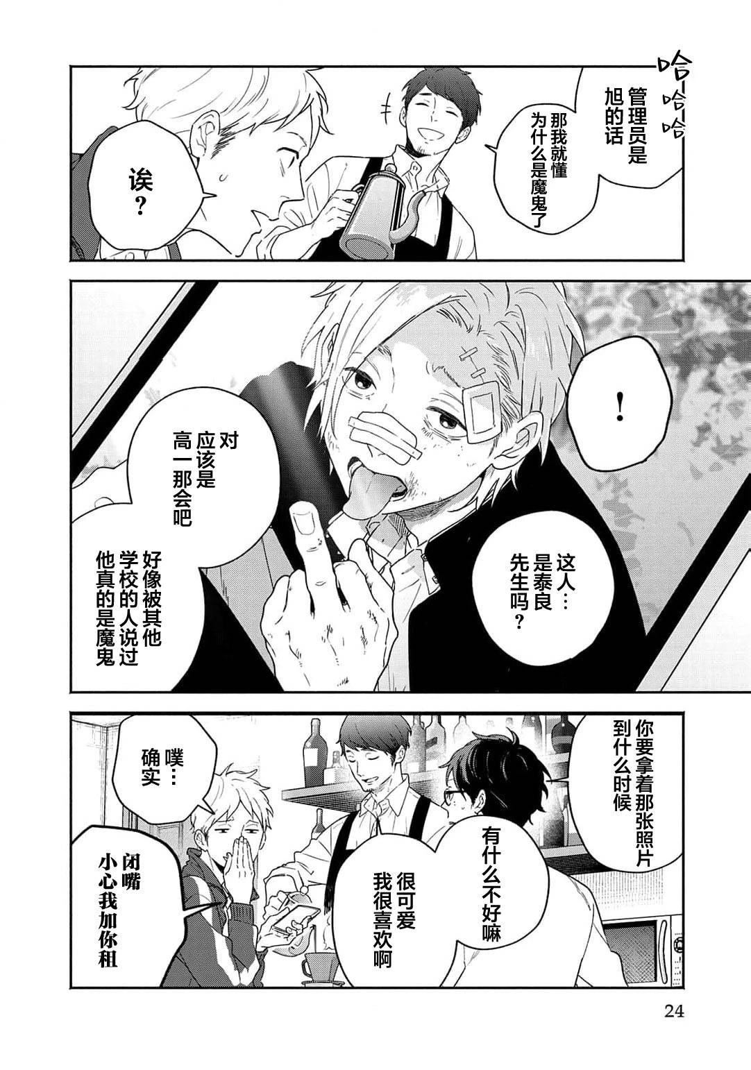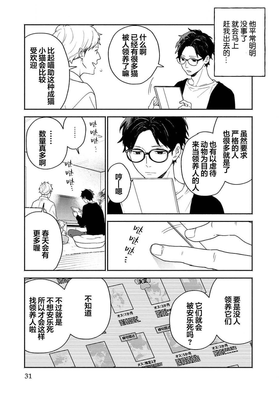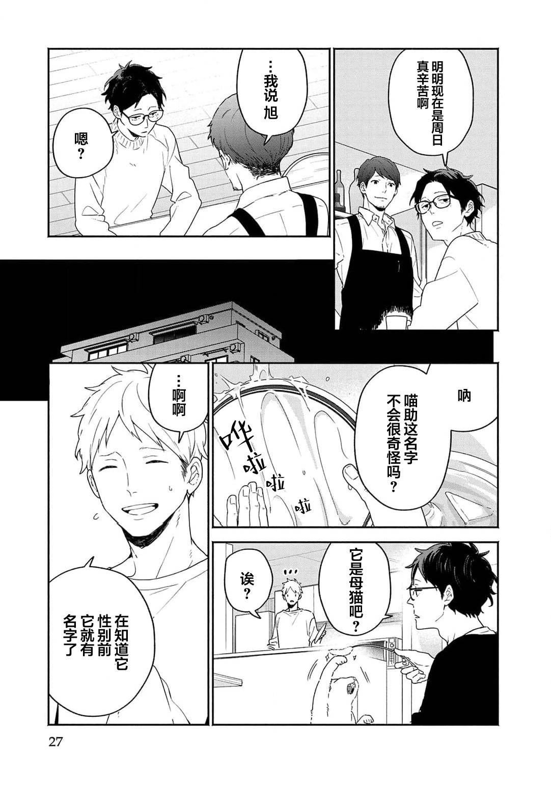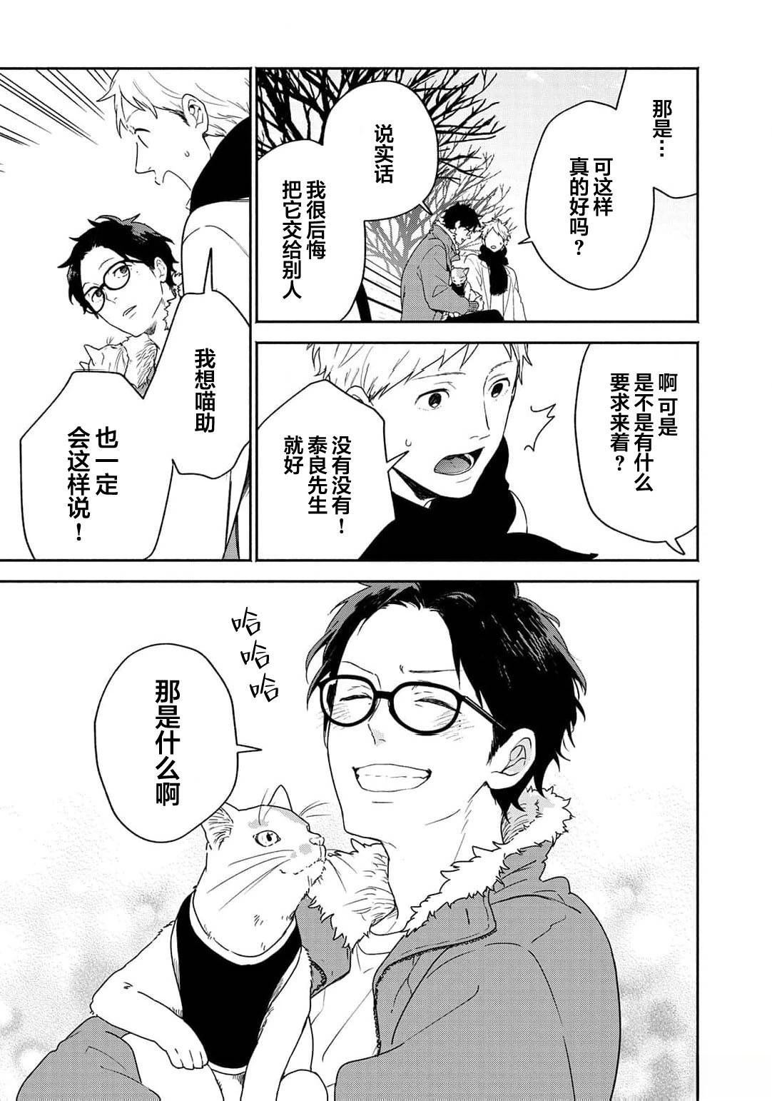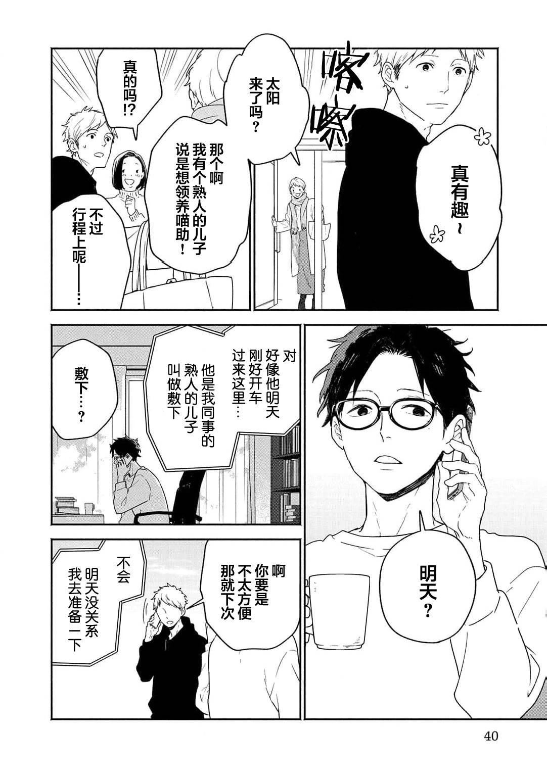 雾山太阳在禁止养宠物的公寓中带回了猫咪猫助,却被管理人泰良旭发现,「希望你能在找到领养人前照顾它」情急之下,以一个月为条件答应了。太阳虽然害怕前不良的旭,但通过喵助两人的交流变深,他亦注意到旭那温柔且魅力的笑容。在那个时候,他知道了旭有个爱慕的人,为了让旭能够保持笑容,于是思考能不能帮助他谈恋爱…?