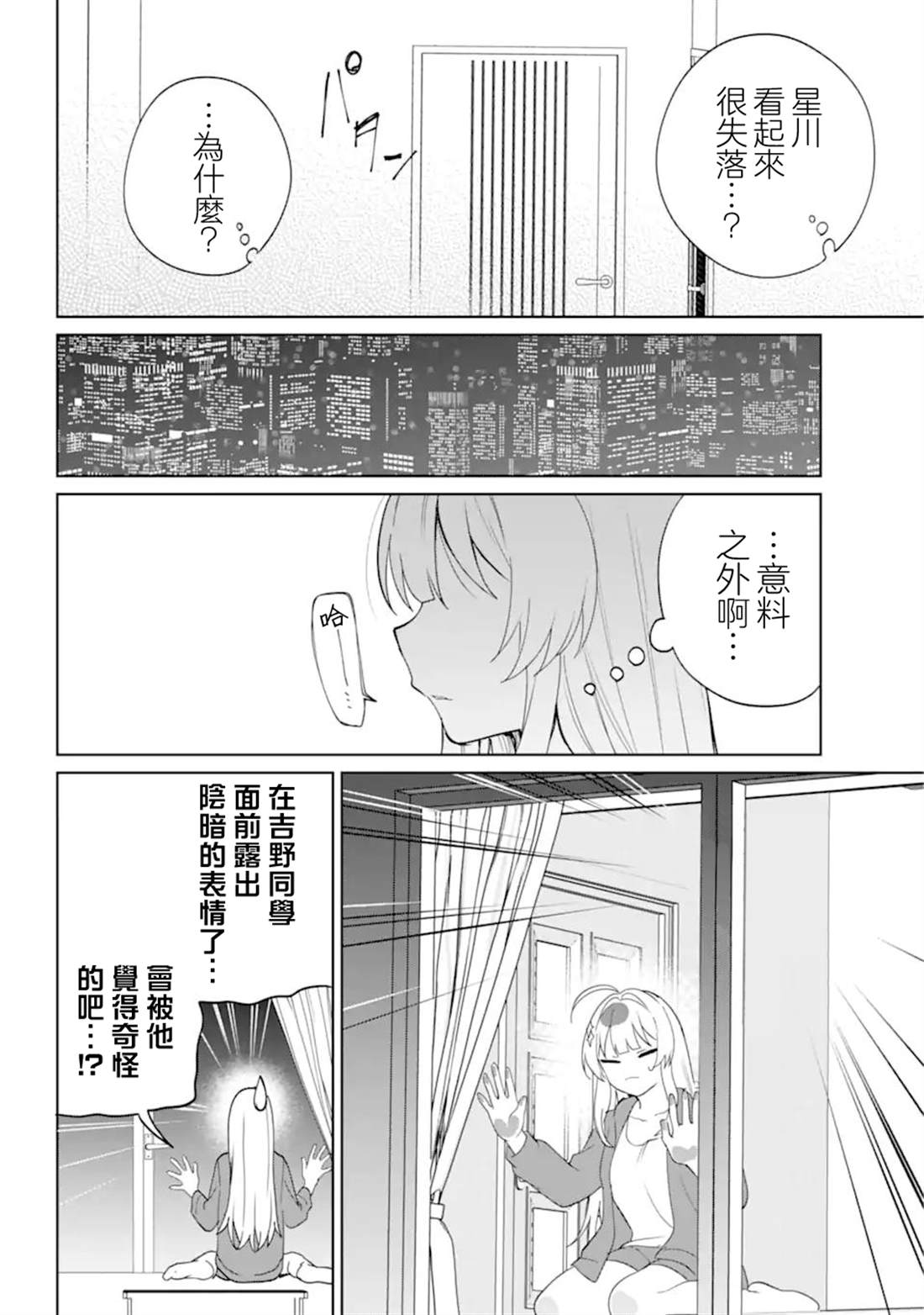 受某种传染病的传播,导致学生宿舍封闭而走投无路的高中生吉野叶多,在深夜与独自胡乱挥舞手机的 同班第一美少女星川遥于公园相遇。 受无法连接网络的机械盲星川之托,造访了少女的家。实际上少女暗藏著不为人知的目的——!? 与善于互动的大小姐的甜蜜同居恋爱喜剧,就此拉帷幕!