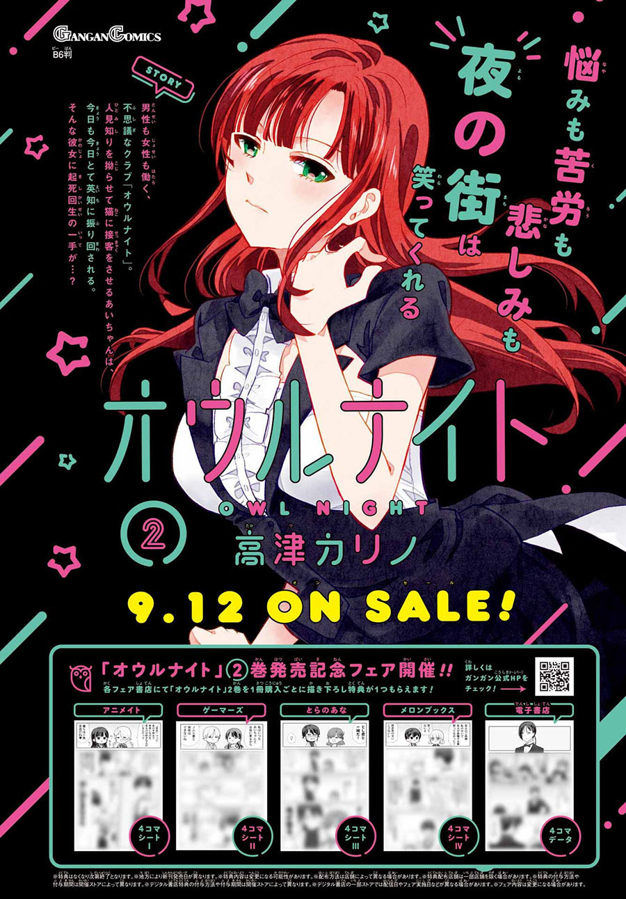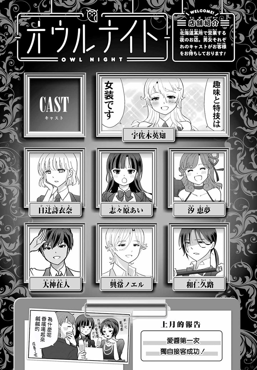 二十岁的大学生?宇佐木英知、在决意去到的夜晚的街道被谜一样的人给逮住了! 困惑之余被带到的地方是、不可思议的俱乐部「OWL NIGHT」。 「找我女朋友有什么事吗」的高津雁也描绘的、工作喜剧坦荡地始连载了!