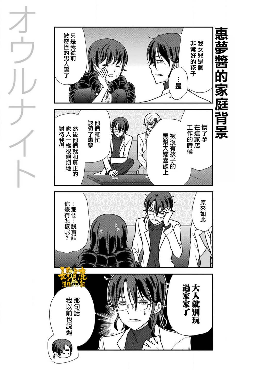 二十岁的大学生?宇佐木英知、在决意去到的夜晚的街道被谜一样的人给逮住了! 困惑之余被带到的地方是、不可思议的俱乐部「OWL NIGHT」。 「找我女朋友有什么事吗」的高津雁也描绘的、工作喜剧坦荡地始连载了!