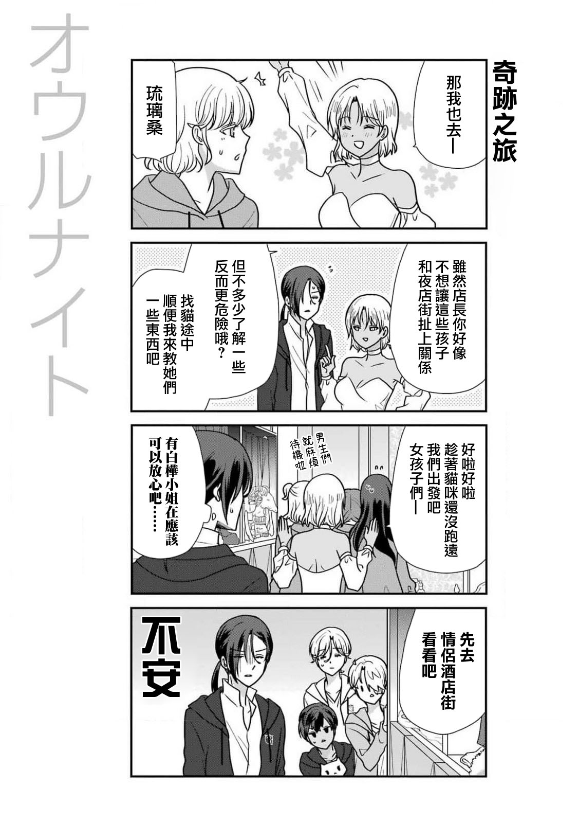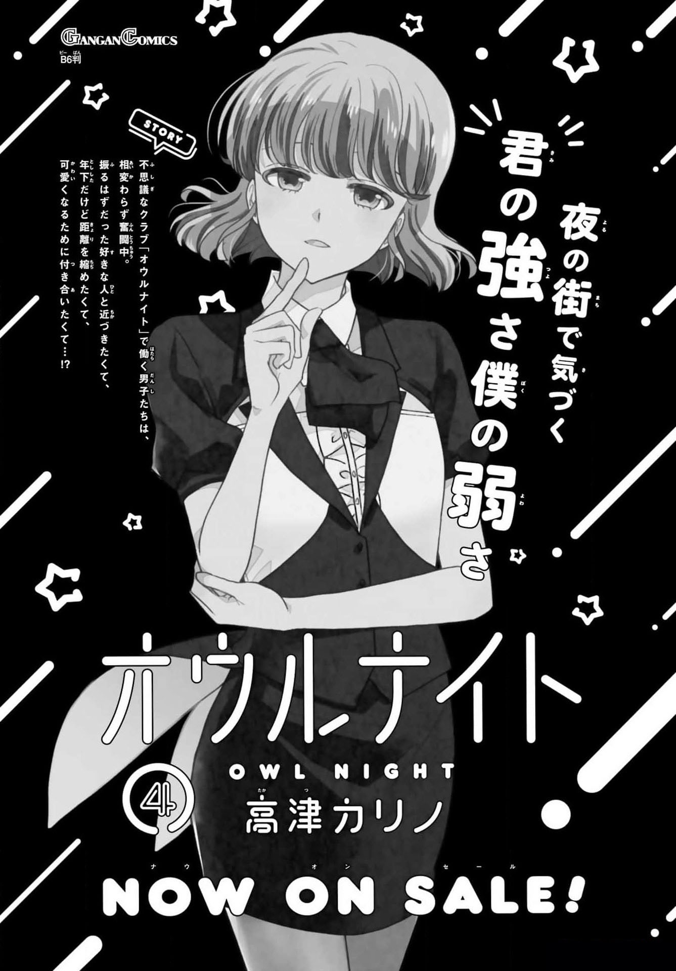 二十岁的大学生?宇佐木英知、在决意去到的夜晚的街道被谜一样的人给逮住了! 困惑之余被带到的地方是、不可思议的俱乐部「OWL NIGHT」。 「找我女朋友有什么事吗」的高津雁也描绘的、工作喜剧坦荡地始连载了!