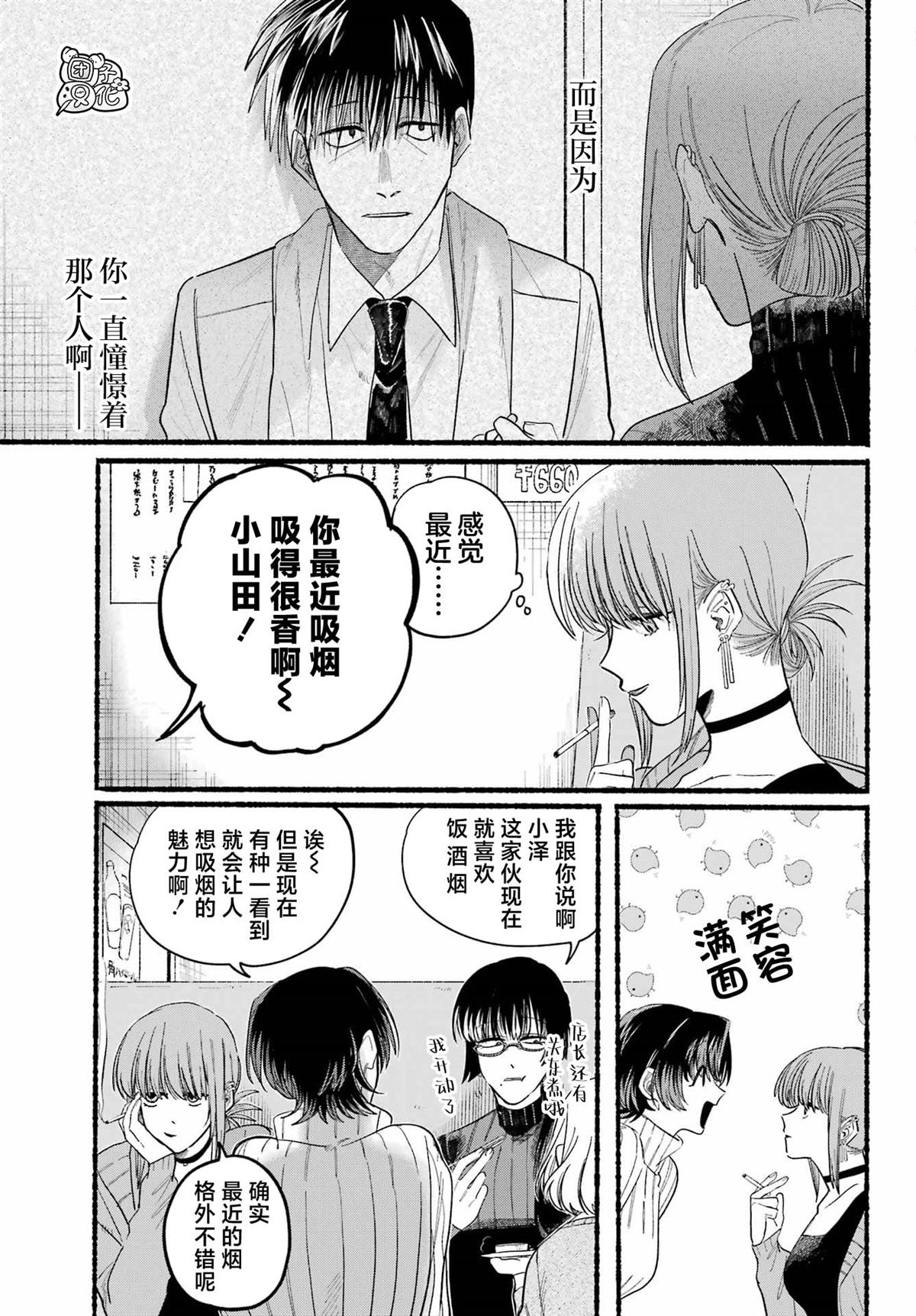 佐佐木是一名奔波于社畜街道,满身疲累的中年男性,每天能够治愈他的只有香烟和他常去的超市的女性店员——山田小姐的灿烂笑容。在某个忙碌一天疲惫不堪的夜晚,前来寻求治愈的佐佐木不仅没有看到山田小姐,连吸烟的地方也都找不到了…。消沉的佐佐木突然听到有人对他说「吸烟来这边」,循声望去,映入眼帘的是一名奇妆异服[]服、自称田山的女孩——[-折叠]