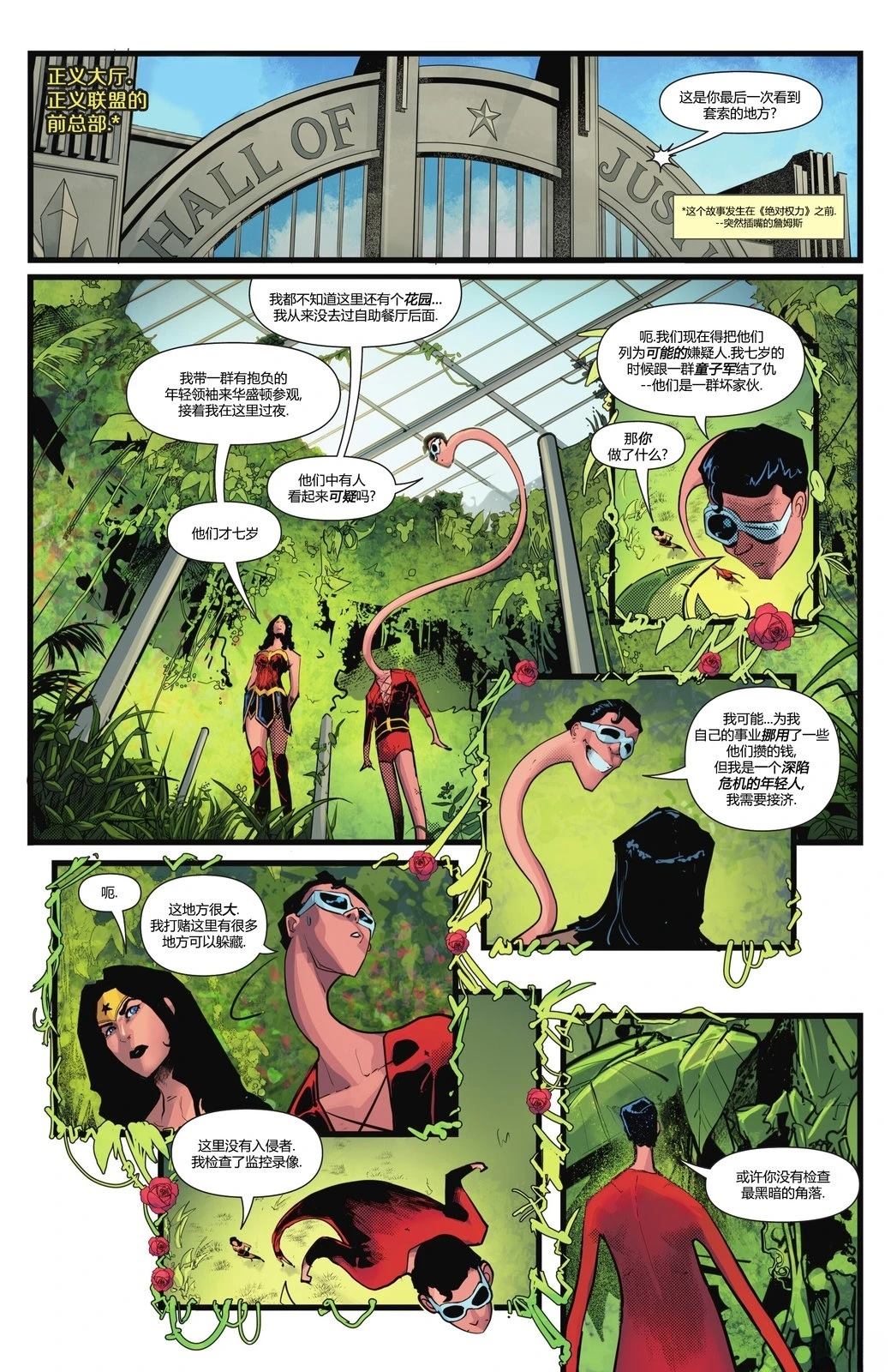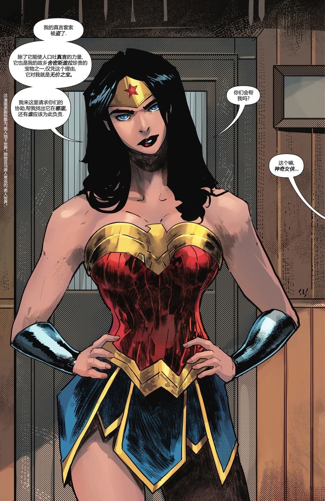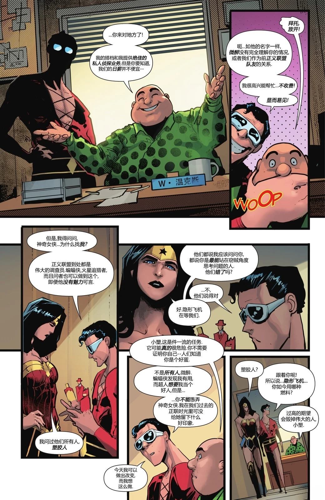 节选自《蝙蝠侠:英勇与无畏》第19期。这是一个正联tas风格的小故事。神奇女侠的真言套索被盗了!蝙蝠侠、火星追猎者和问者等侦探一致推荐她去找塑胶人——理由是,这位前科犯更能理解窃贼的心理…… ???