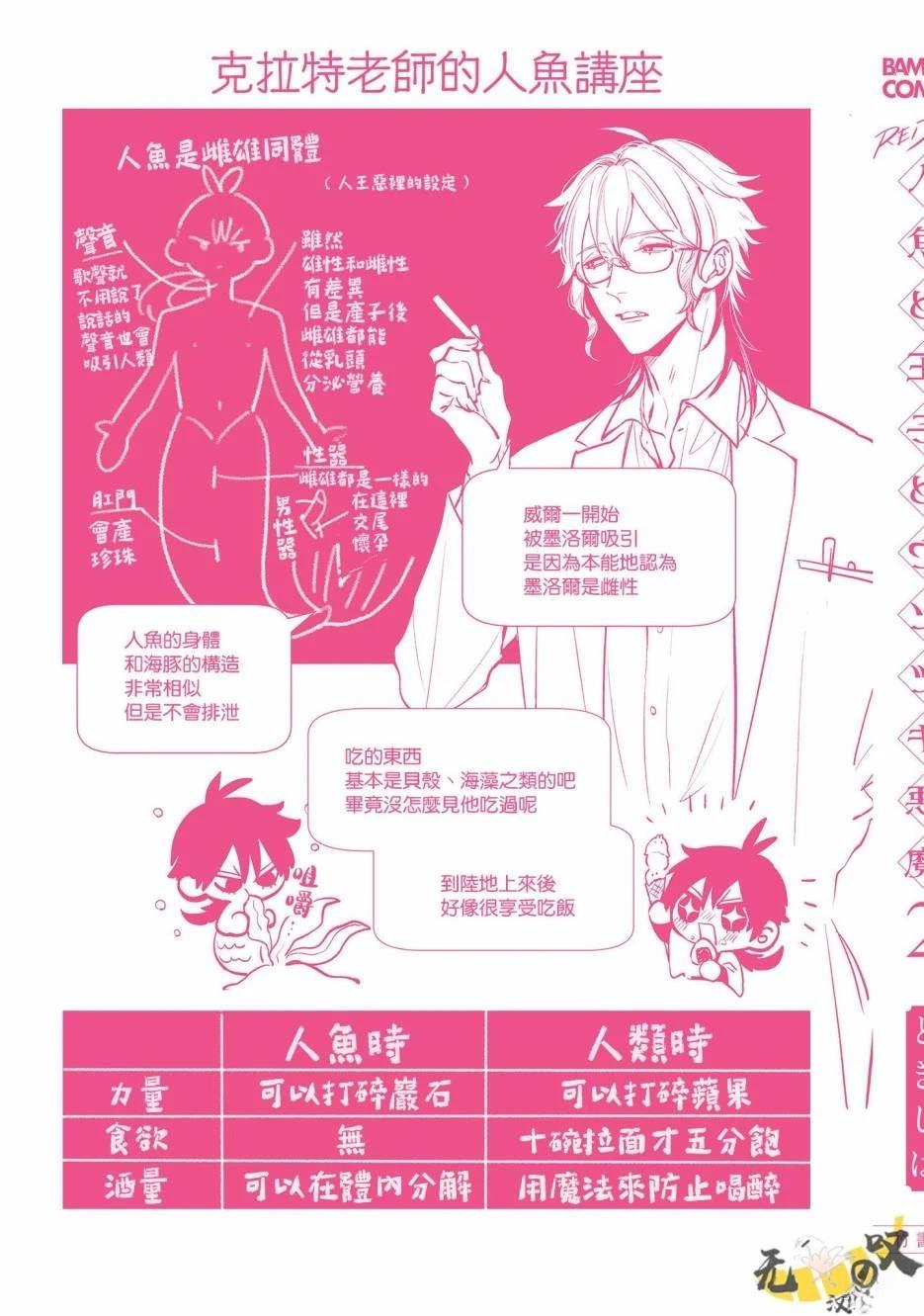 在那个瞬间,人鱼第一次知晓了什么是爱情——。 梅洛尔是一位姿容昳丽的人鱼王子,他拥有能够魅惑所有生物的美妙歌声 他的好友克拉特,是被海中的大家看作“恶魔“所忌惮的存在。 那一天,梅洛尔救下了掉落海中的人类王子·威尔,这是2人命运般的邂逅。 即使被克拉特警告「与人类交好非常危险」,梅洛尔也并不[]不在乎,就这样渐渐迷恋上威尔了吗……!? 人鱼王子和人类王子和扁面蛸之间,闻所未闻的三角美人鱼故事幕[-折叠]
