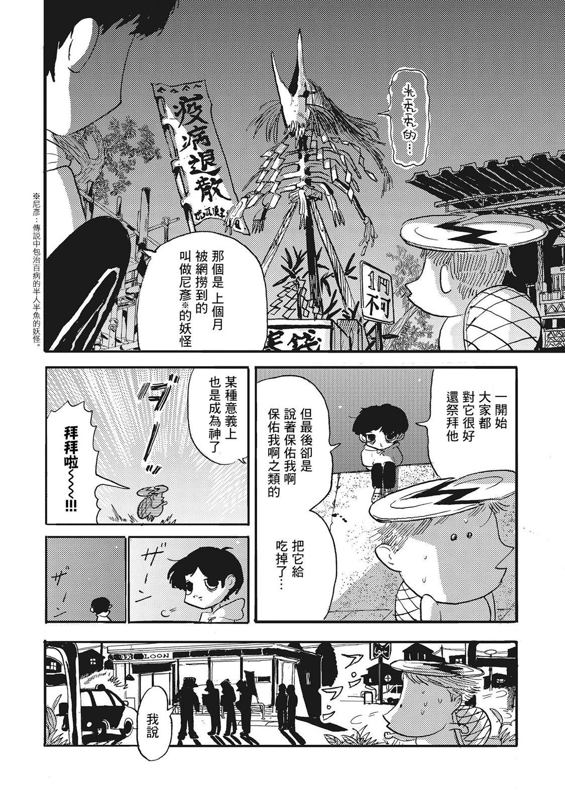 欢迎来到宫崎夏次系的世界,在这里,悲伤、荒诞、绝望、希望、温柔、恐怖奇迹般交织在一起。 主人公·口酒祝自幼因笑容怪异而被周围人疏远,长大成人后,他依然在不断练习笑容。就在这时,他遇到了一只与自己同样找不到归属感的河童…。孤独者们的反击,始。