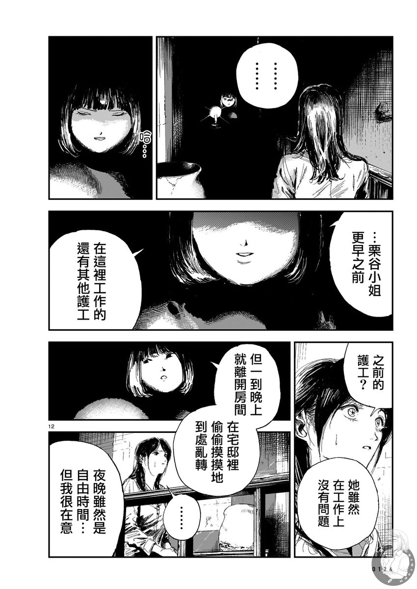 由护士转行为护工的栗谷茜,作为长卧不起的女性的帮手来到深山中的大宅进行护理服务。然而,名为妃倭子的女性,不知为何头套黑袋,肌肤颜色怪异,一声不吭动也不动。即便作为新人的茜想全力以赴,但内心的疑惑在不断绽——她,不是已经死了吗?让人不寒而栗、充满氛围的恐怖禁忌护理故事登场!