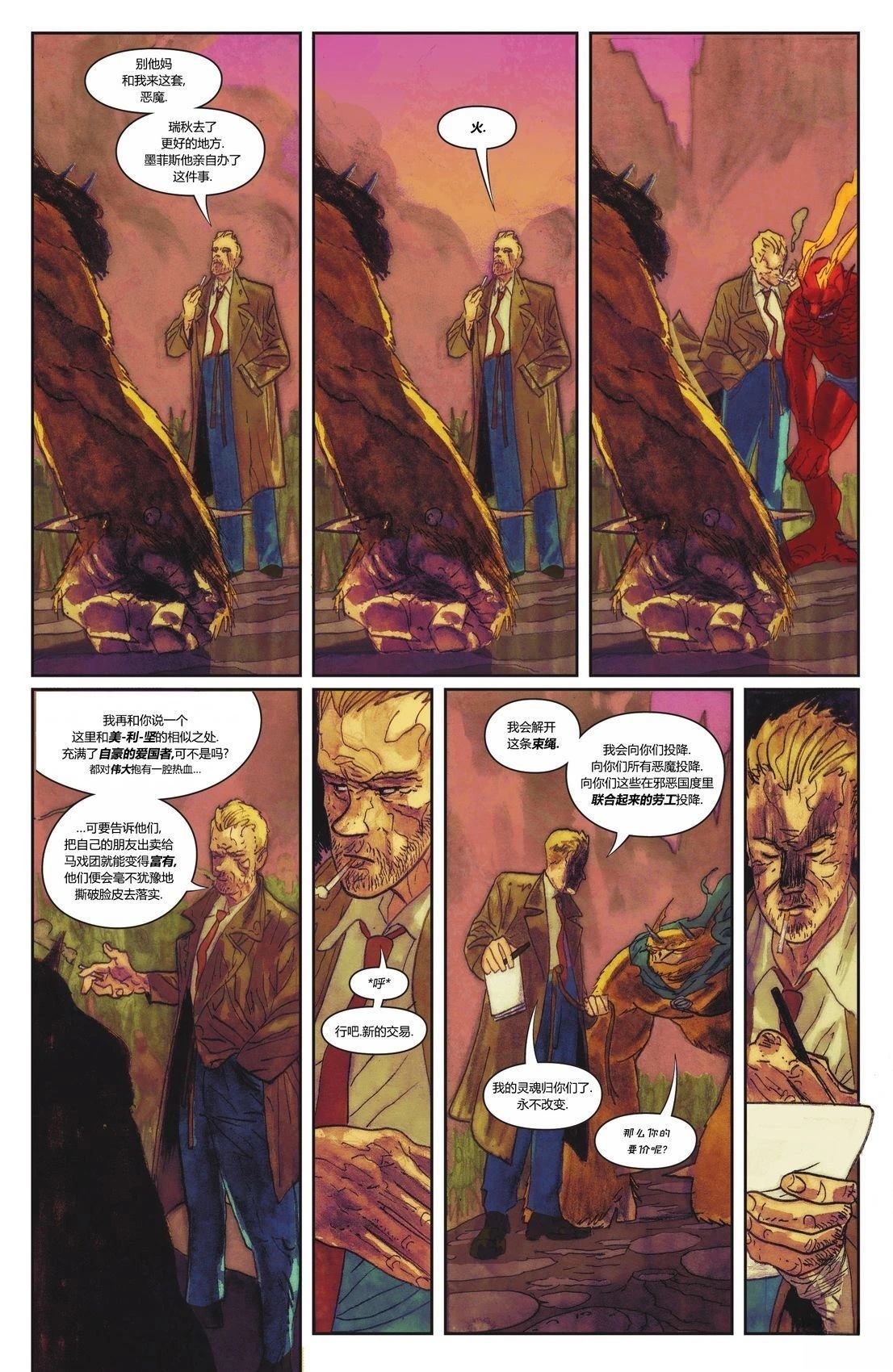 你们老朋友约翰·康斯坦丁回来了!小小的花招让他又一次虎口脱险,可最终,他还是玩砸了。他的心脏不再跳动,身体始腐烂,同纳特以及诺亚一起被通缉,而这一切,一如既往,都是约翰的错。在这场美国的逃亡中将会发生什么?老狐貍能否再次躲过死亡?敬请阅读这一全新连载。