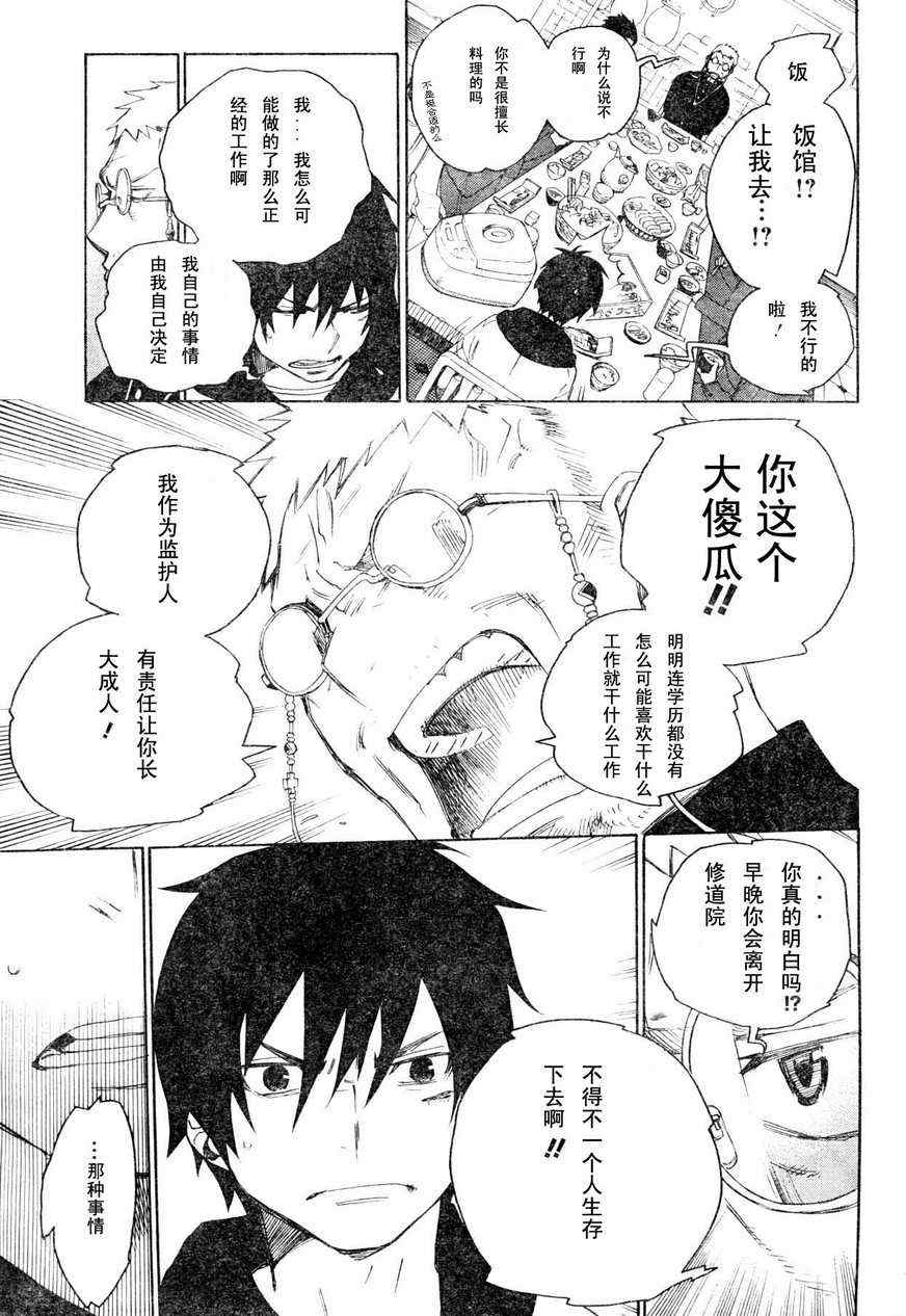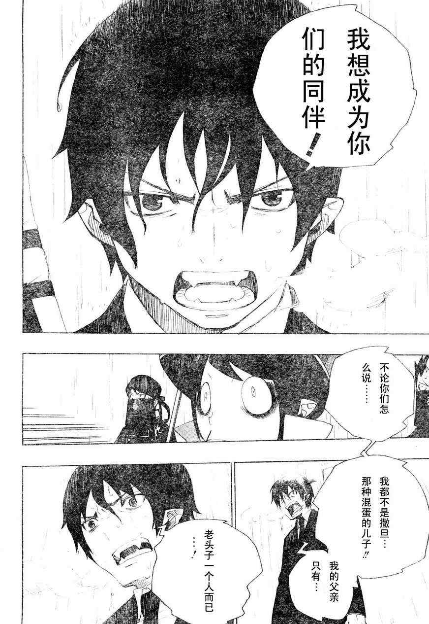 主人公奥村燐,是在正十字学园上学的学生,虽说表面上是炎的后代但是实际上是魔神撒旦的儿子,只能用降魔剣抑制这力量,藤本被撒旦杀死后,就敲正十字骑士団的大门,立志成为除魔师,他的目标是—揍撒旦一顿……于2009年5月号始连载于《Jump Square》(简称Jump SQ、日语:ジャンプスクエア)