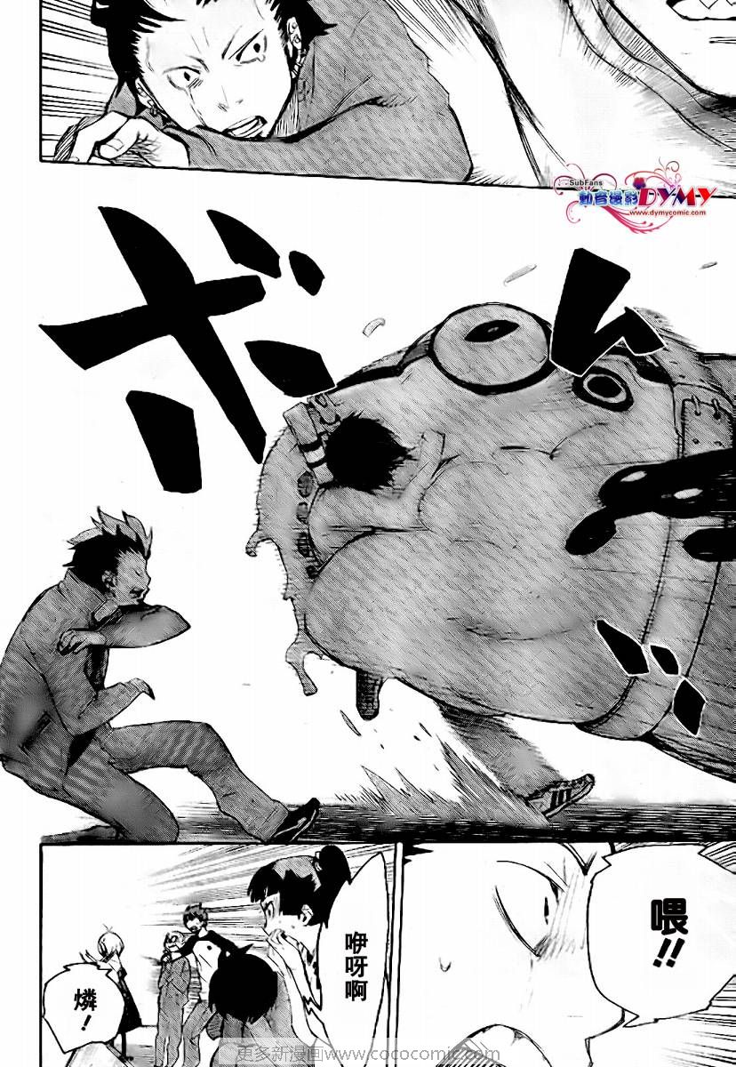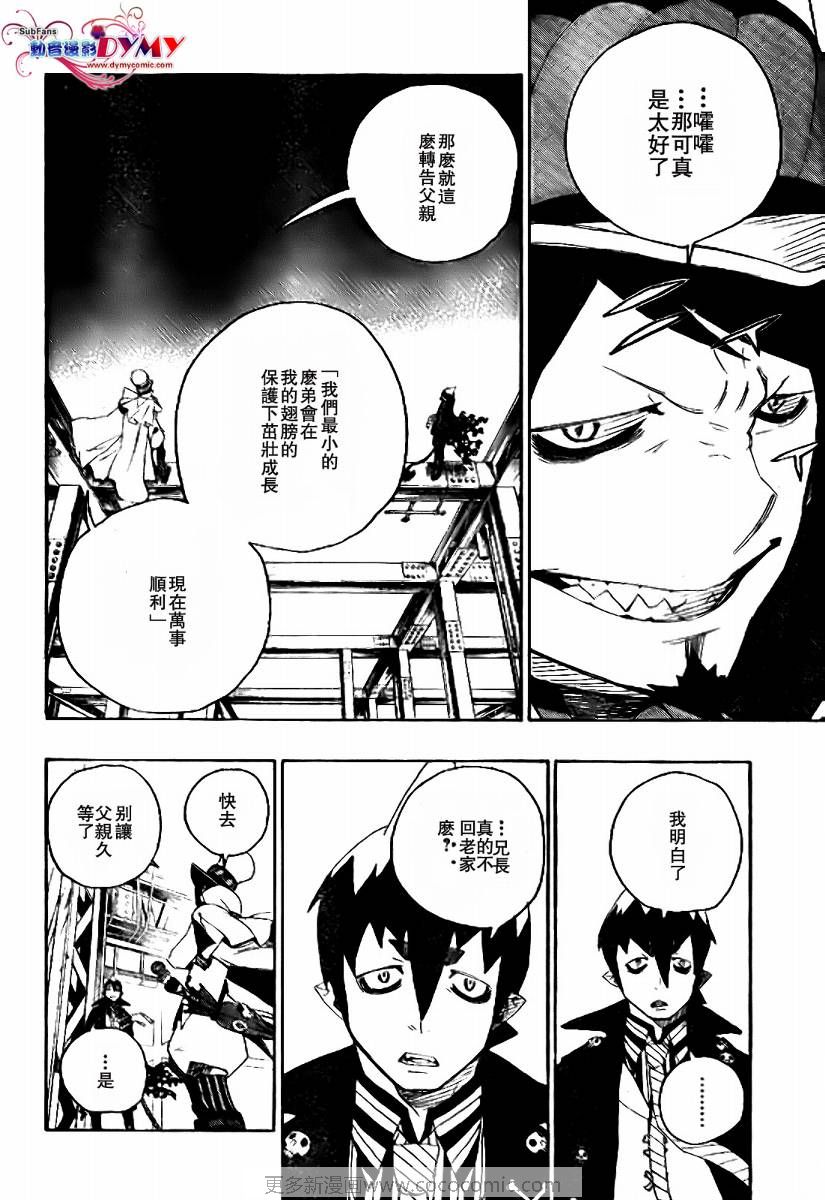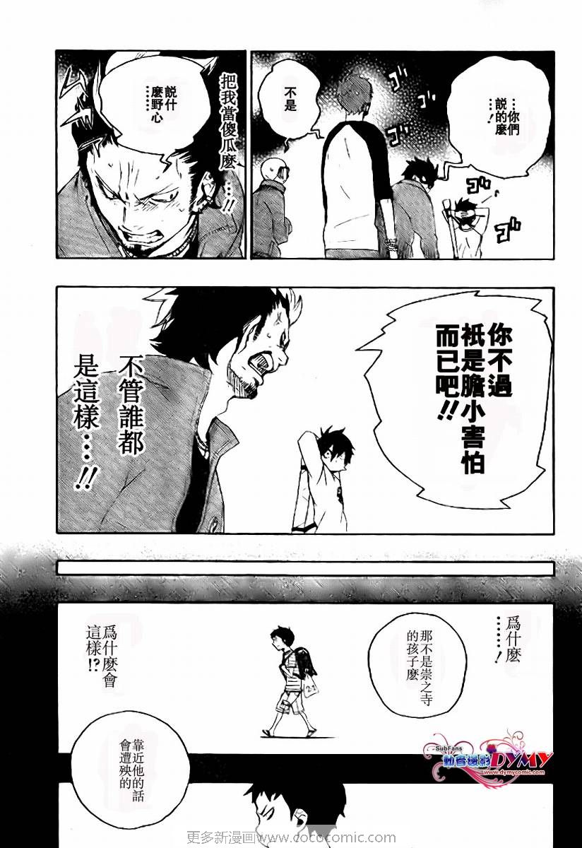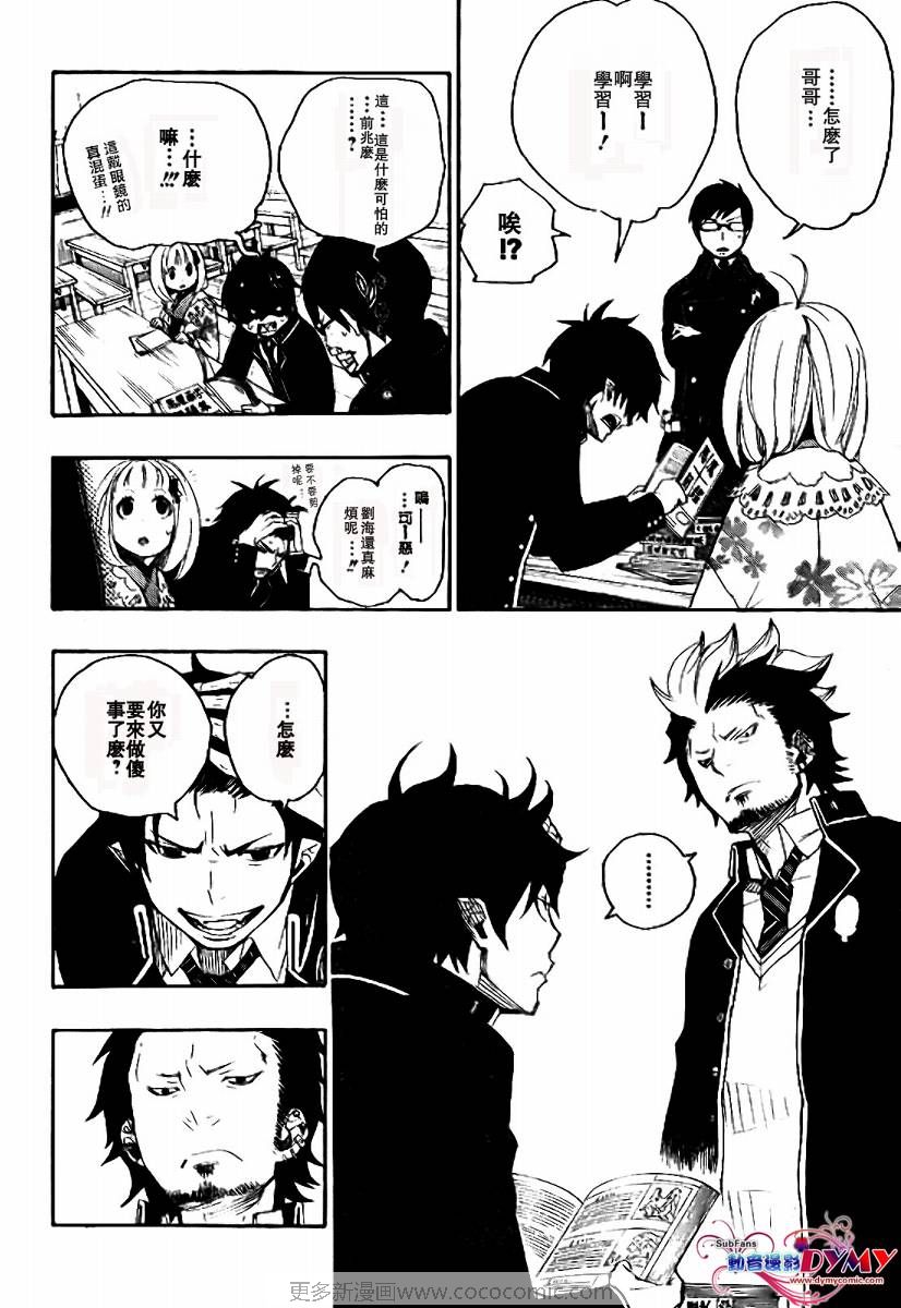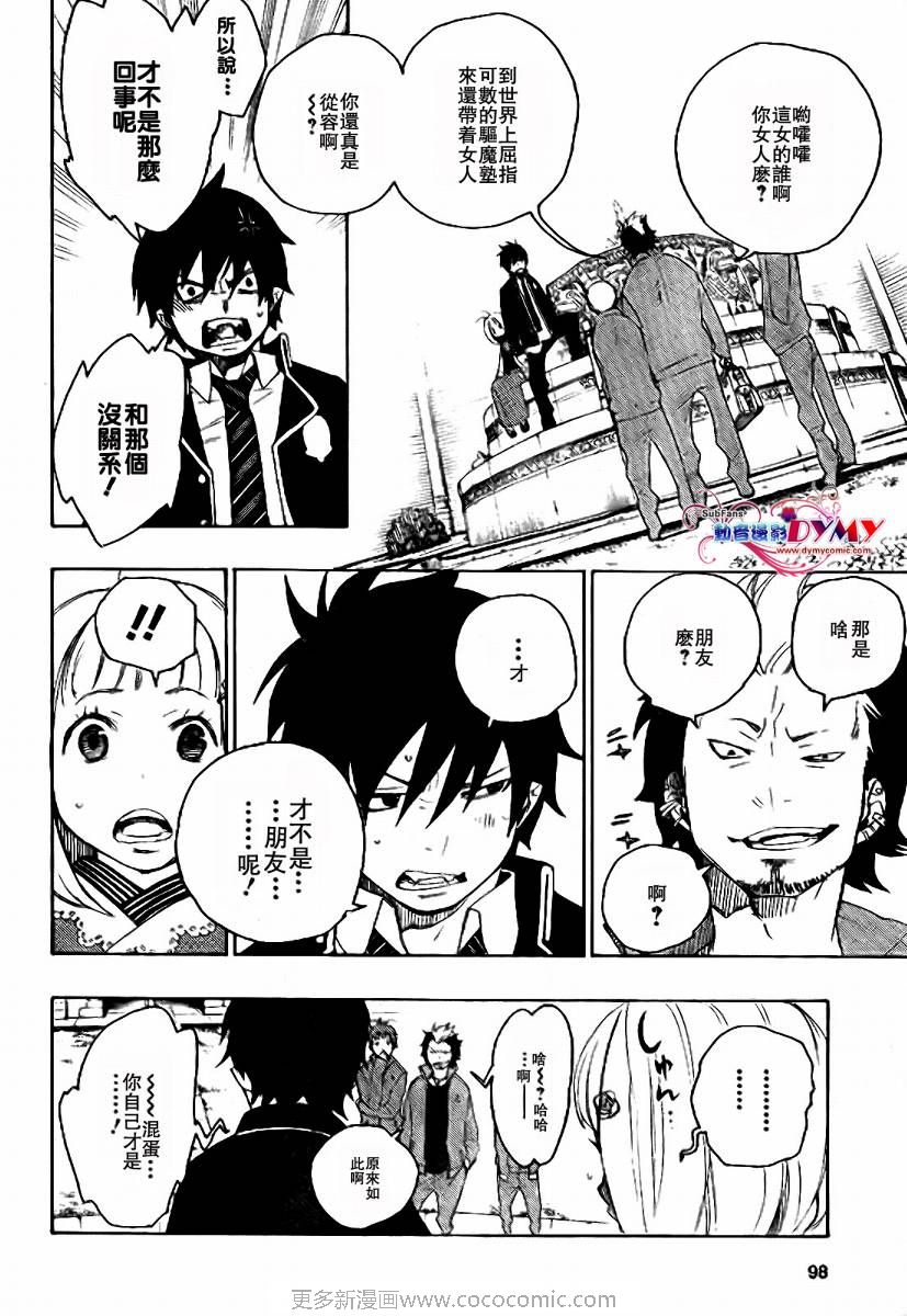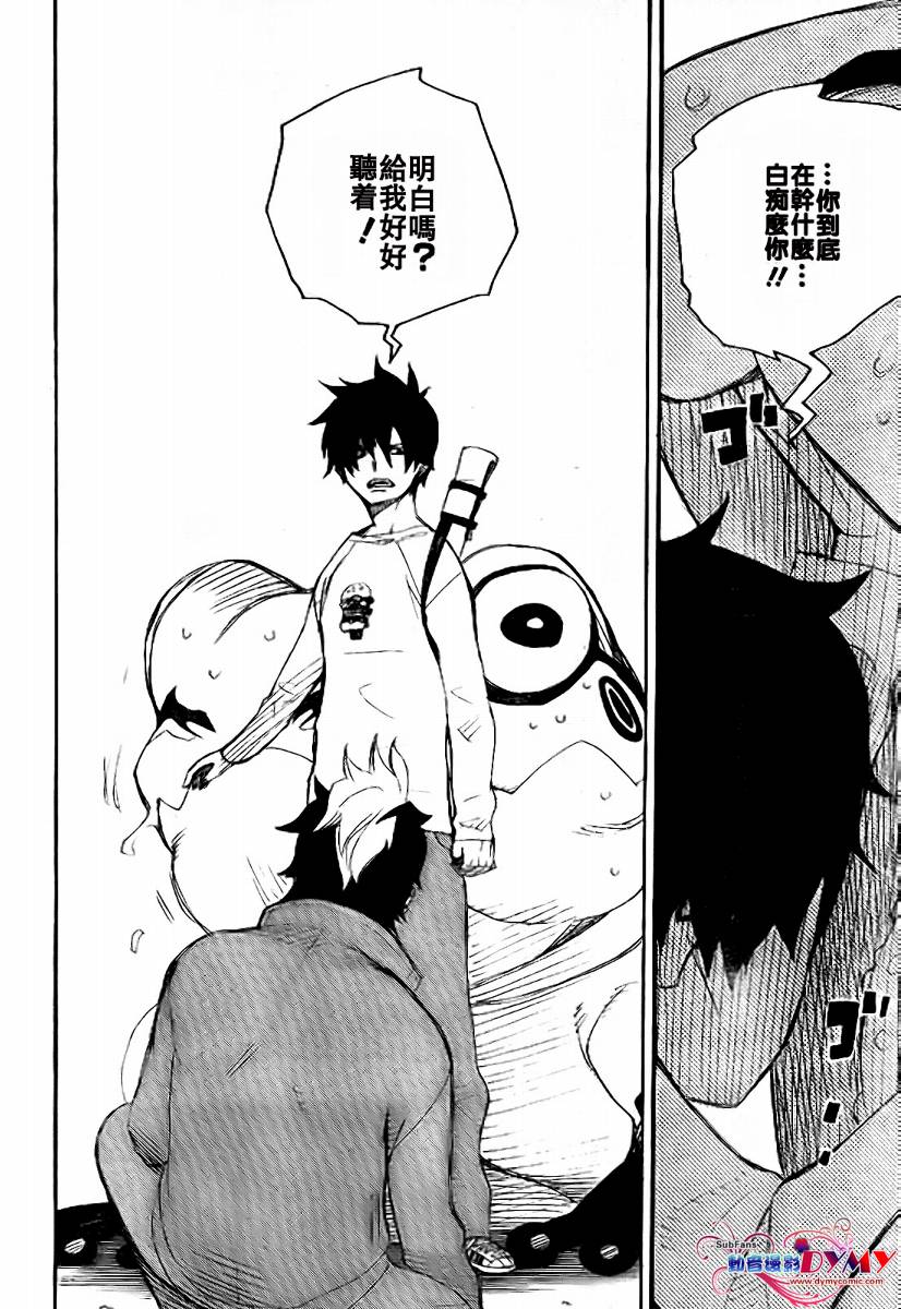 主人公奥村燐,是在正十字学园上学的学生,虽说表面上是炎的后代但是实际上是魔神撒旦的儿子,只能用降魔剣抑制这力量,藤本被撒旦杀死后,就敲正十字骑士団的大门,立志成为除魔师,他的目标是—揍撒旦一顿……于2009年5月号始连载于《Jump Square》(简称Jump SQ、日语:ジャンプスクエア)