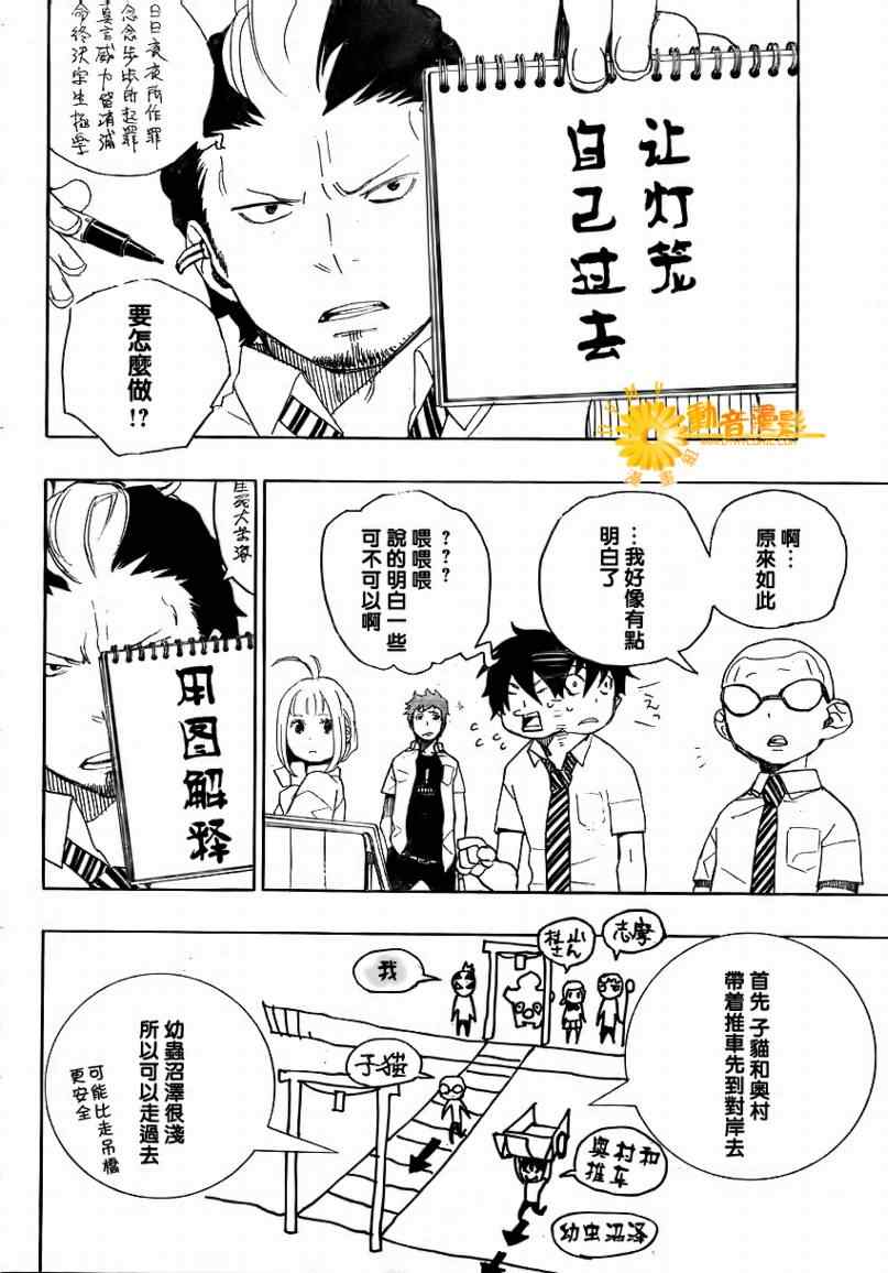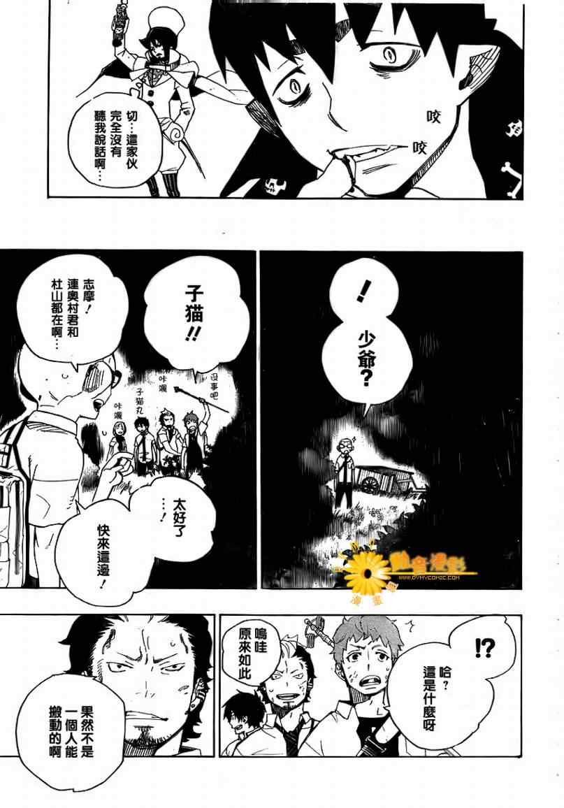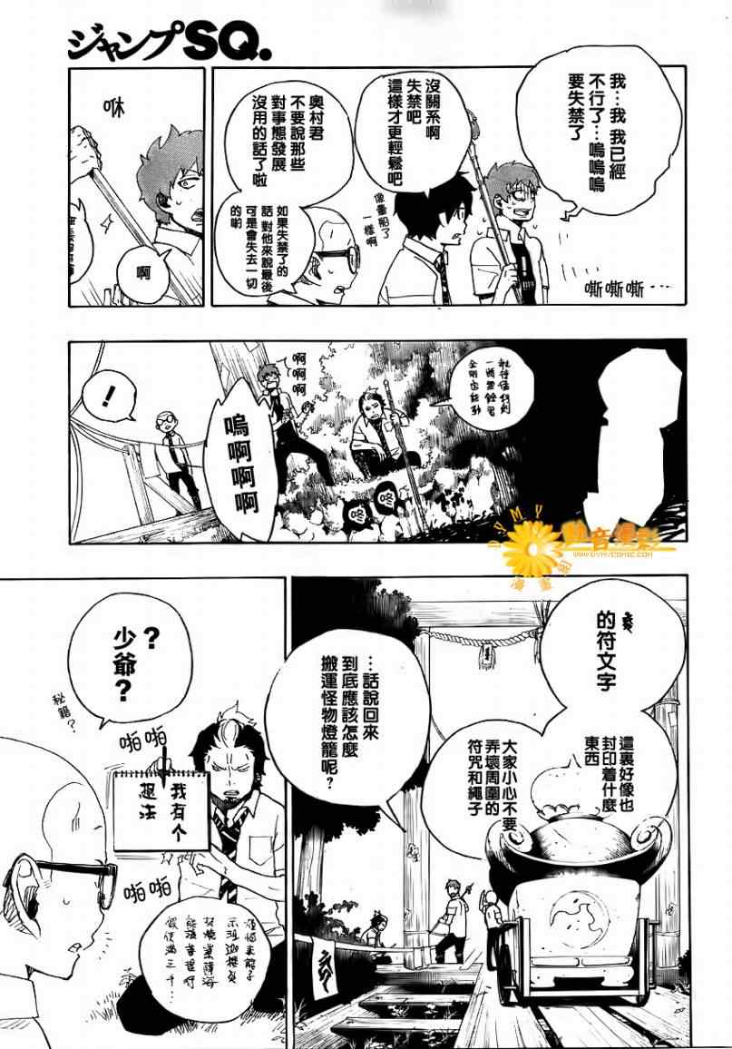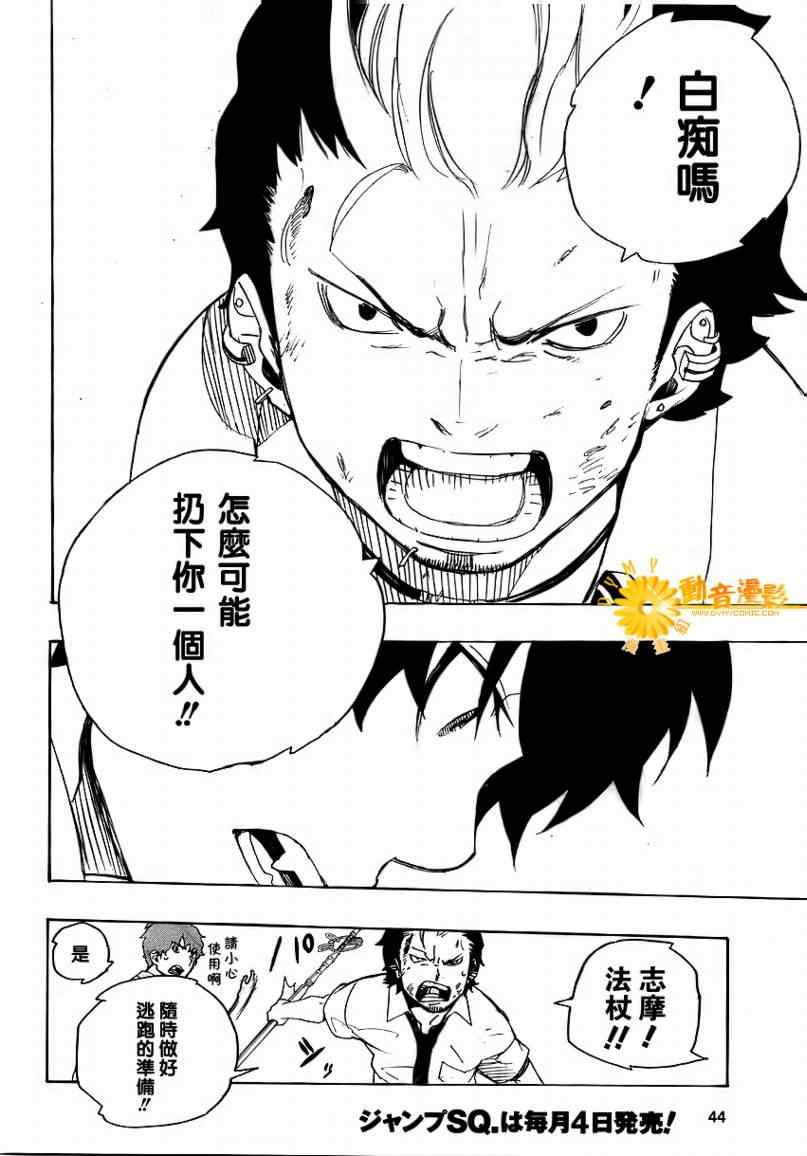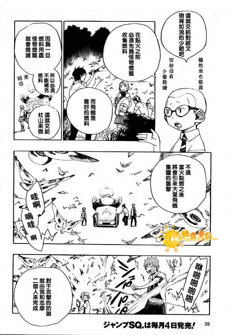 主人公奥村燐,是在正十字学园上学的学生,虽说表面上是炎的后代但是实际上是魔神撒旦的儿子,只能用降魔剣抑制这力量,藤本被撒旦杀死后,就敲正十字骑士団的大门,立志成为除魔师,他的目标是—揍撒旦一顿……于2009年5月号始连载于《Jump Square》(简称Jump SQ、日语:ジャンプスクエア)
