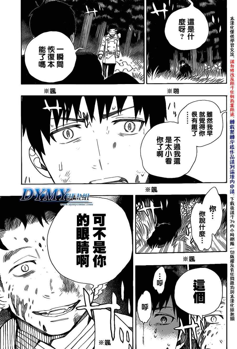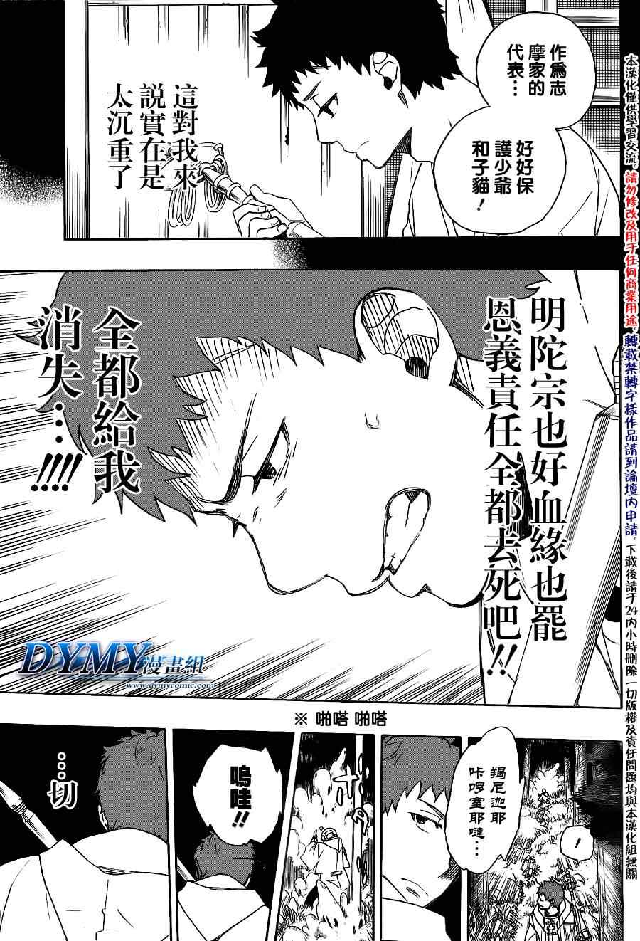 主人公奥村燐,是在正十字学园上学的学生,虽说表面上是炎的后代但是实际上是魔神撒旦的儿子,只能用降魔剣抑制这力量,藤本被撒旦杀死后,就敲正十字骑士団的大门,立志成为除魔师,他的目标是—揍撒旦一顿……于2009年5月号始连载于《Jump Square》(简称Jump SQ、日语:ジャンプスクエア)
