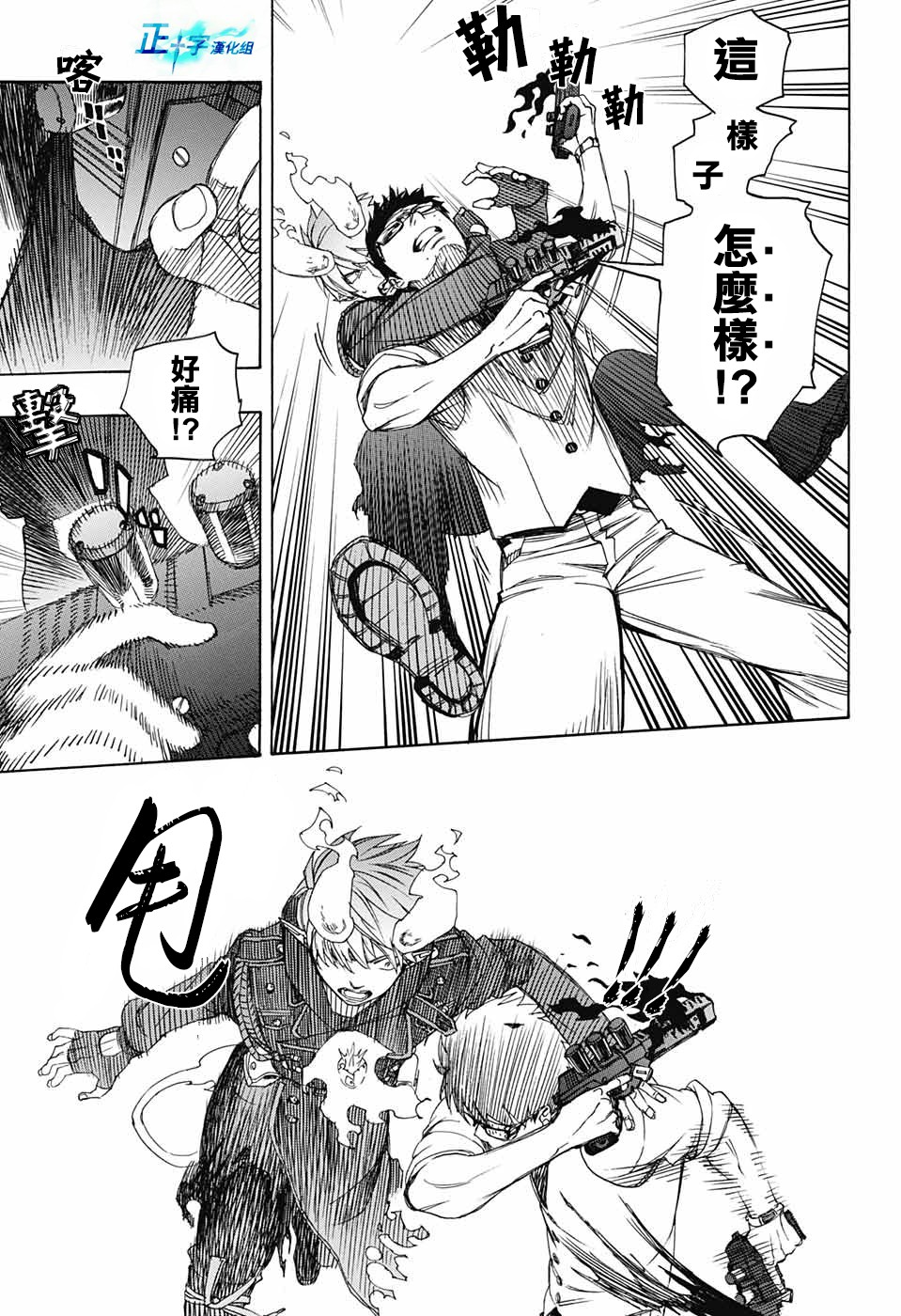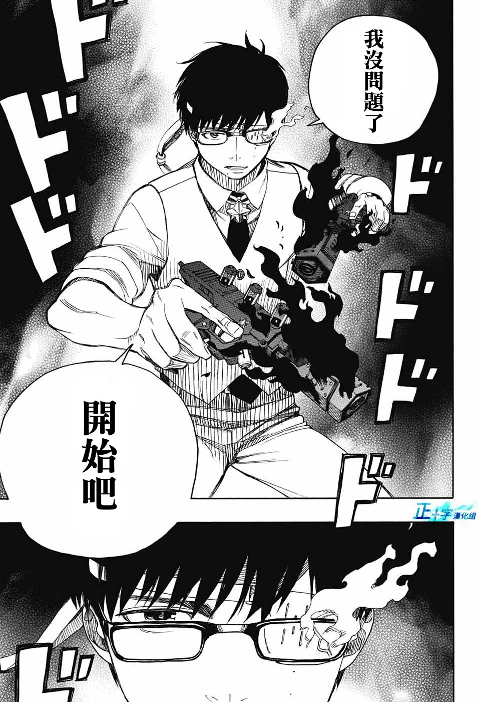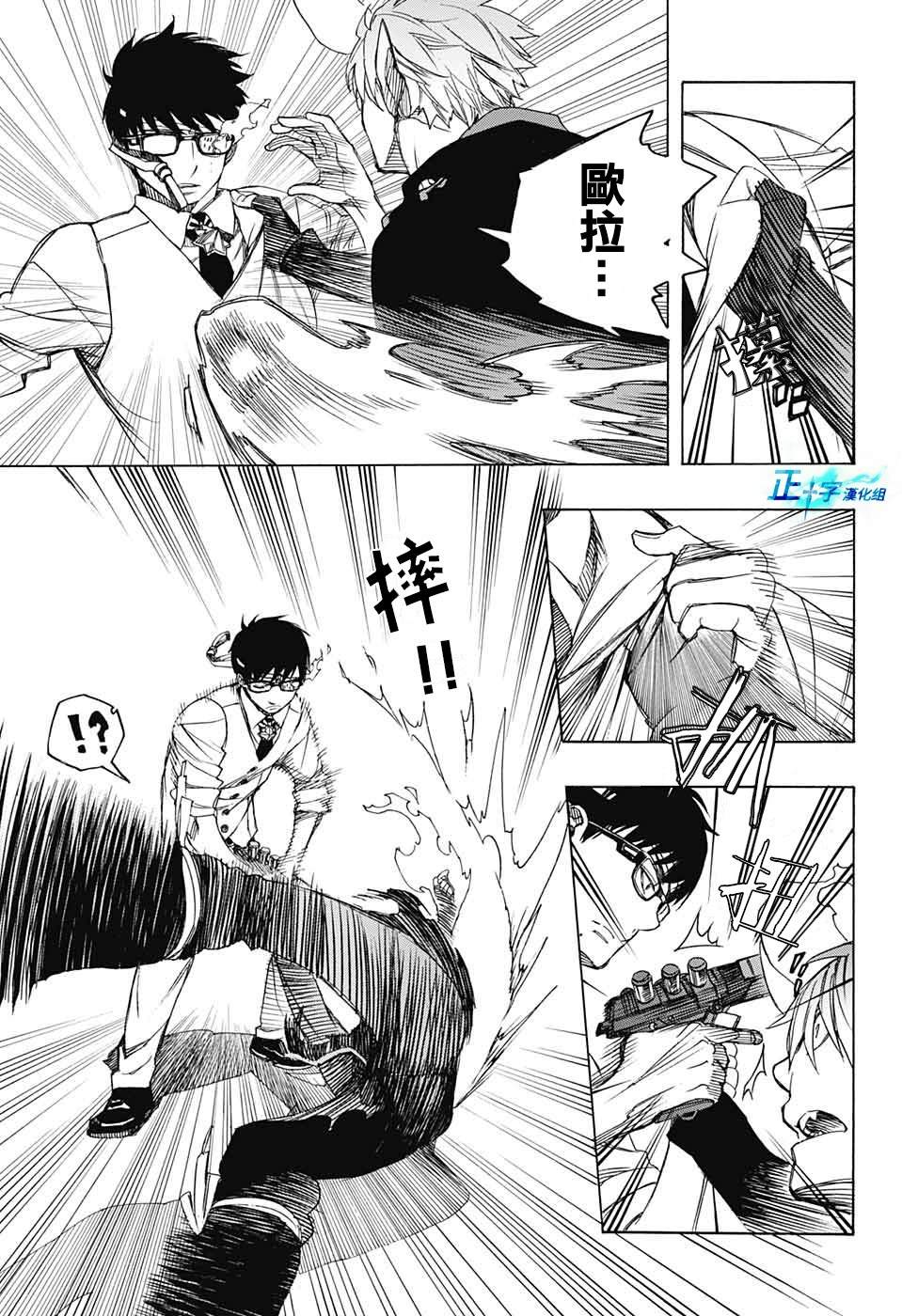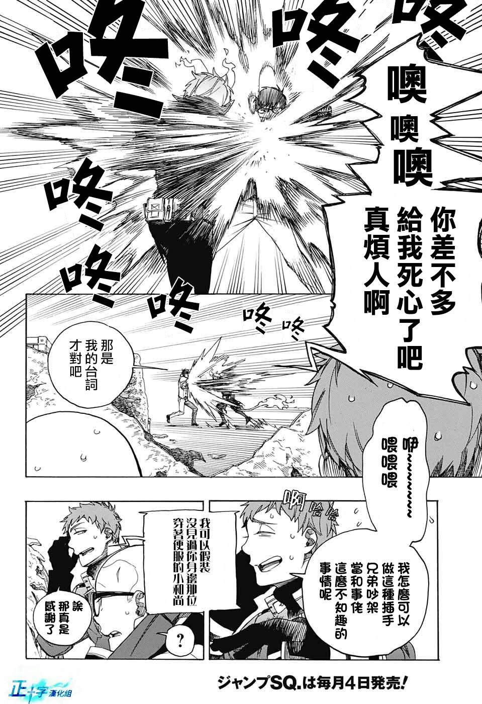 主人公奥村燐,是在正十字学园上学的学生,虽说表面上是炎的后代但是实际上是魔神撒旦的儿子,只能用降魔剣抑制这力量,藤本被撒旦杀死后,就敲正十字骑士団的大门,立志成为除魔师,他的目标是—揍撒旦一顿……于2009年5月号始连载于《Jump Square》(简称Jump SQ、日语:ジャンプスクエア)