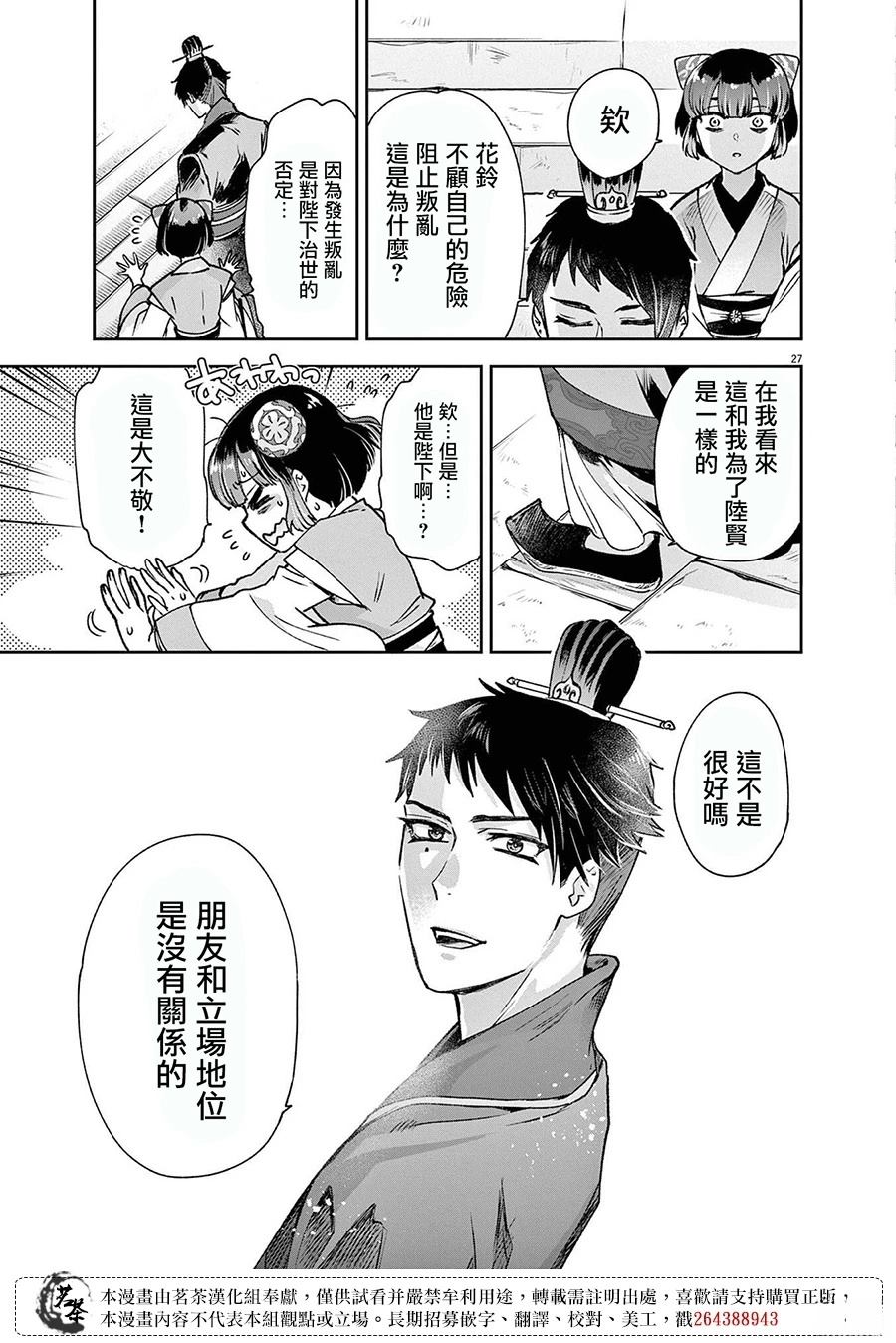 继承了穷凶极恶父亲的凶狠眼神的少女花铃进入了后宫想要谋求舒畅的生活,而所有人都因为她的父亲而对她避之不及。某天,花铃遇到了当朝的幼帝……她决定为了保护年幼而孤独的皇帝而战。而后宫中又有多少阴谋,在等著他们……
