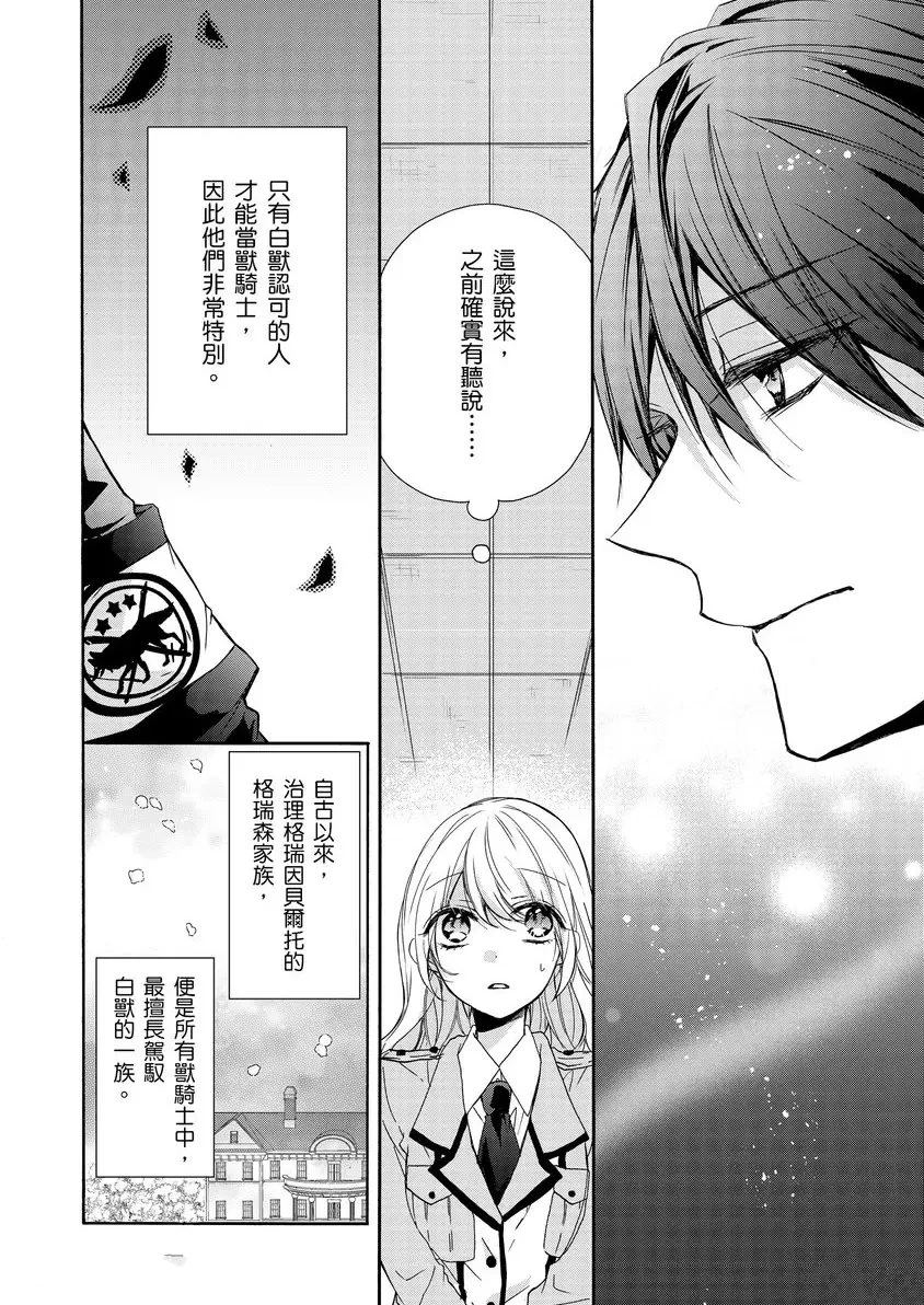 平凡的我突然要去照顾猛兽宝宝…!?冒失又倒霉的丽兹,求职屡屡碰壁。在因为各种意外而落榜后,她终于收到一份录取通知。但是……她不记得自己有应征王国军兽骑士团的办事员啊!?那可是和狂暴又危险的「白兽」一起战斗的骑士团……只想低调工作的丽兹,在一次送件给兽骑士团长杰德时,却不小心撞见他的秘密!狡黠地说著「[]「我必须好好监视你」的杰德,竟然任命她为幼兽的照顾员——!?抖S的兽骑士团长杰德,和倒霉体质的丽兹令人怦然心动×毛茸茸的生活[-折叠]