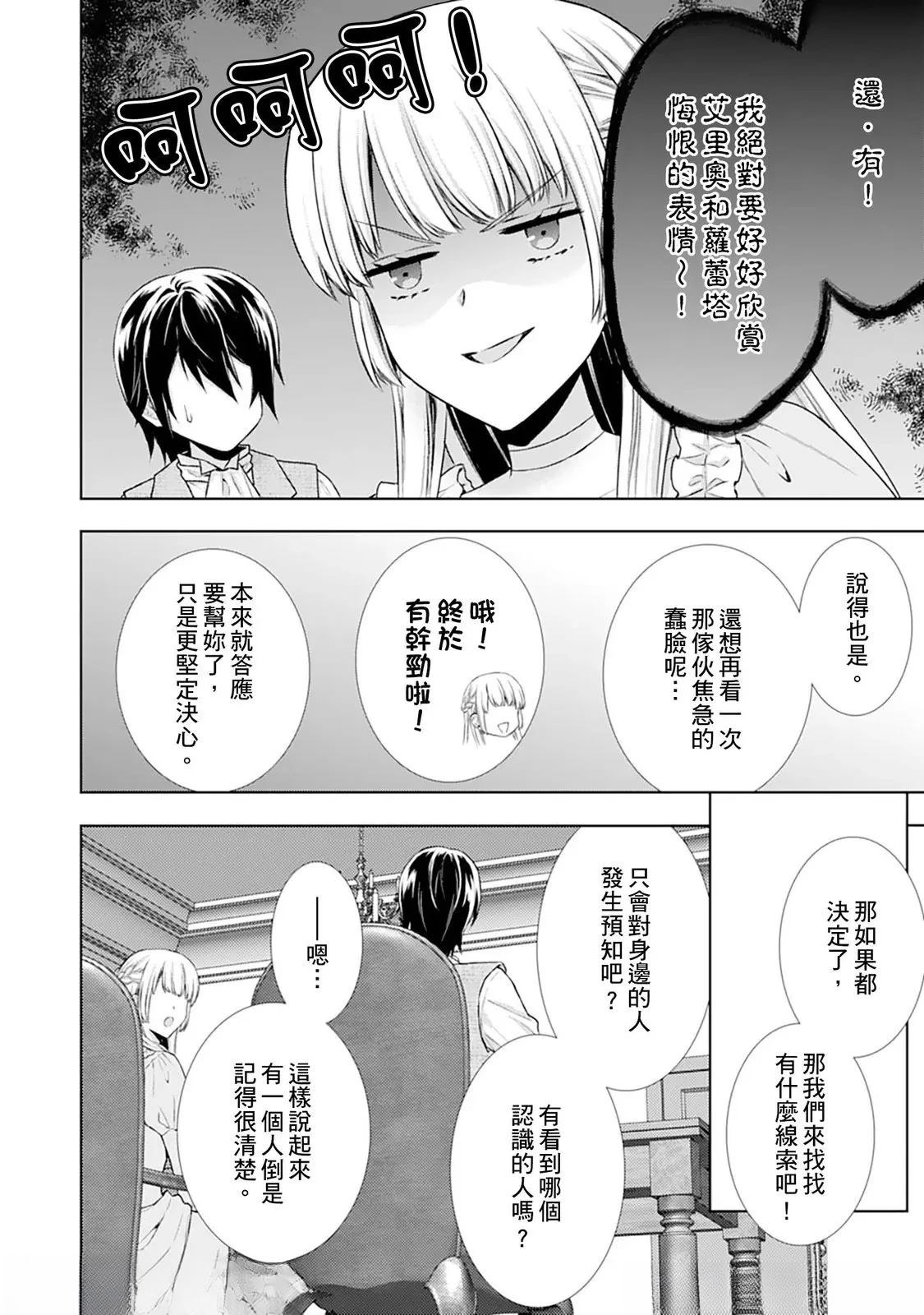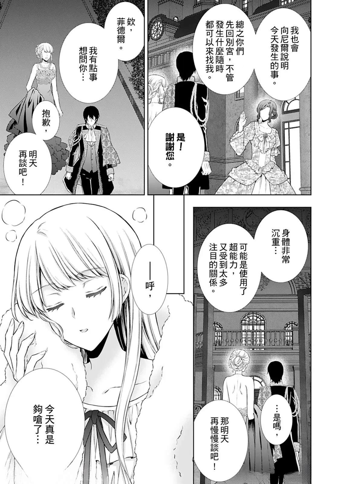 席耶拉的上一世被男友悔婚背叛坠桥而亡,这一世的她转生为贵族千金。在第二次的人生她遇到了第二王子艾里奥并与之缔结婚约,原本以为从此将会是一帆风顺幸福快乐,却没想到……婚约再度被解除了!?事实上,艾里奥真正看上的是席耶拉家族历代相传的「超能力」!可是,席耶拉对此似乎是一无所知……。「要是你不具备超能力,[],就没有价值让我爱你!」艾里奥抛下这句话就带著新的未婚妻拂袖而去了。二次被抛弃的席耶拉又悲又悔留下了伤心的泪水,但在模糊的视线中艾里奥他们的身影却逐渐清晰了起来…[-折叠]