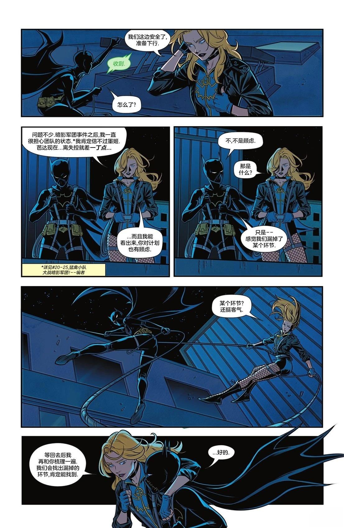 黑金丝雀重组猛禽小队,但出于某些原因,她不能告诉芭芭拉她们,只能寻找新队友。新的猛禽小队阵容包括蝙蝠女郎、新神族的大芭达、野猫特工队的狂热,甚至还有哈莉·奎茵!?然而如此重磅的组合竟然是为了对抗她们!?