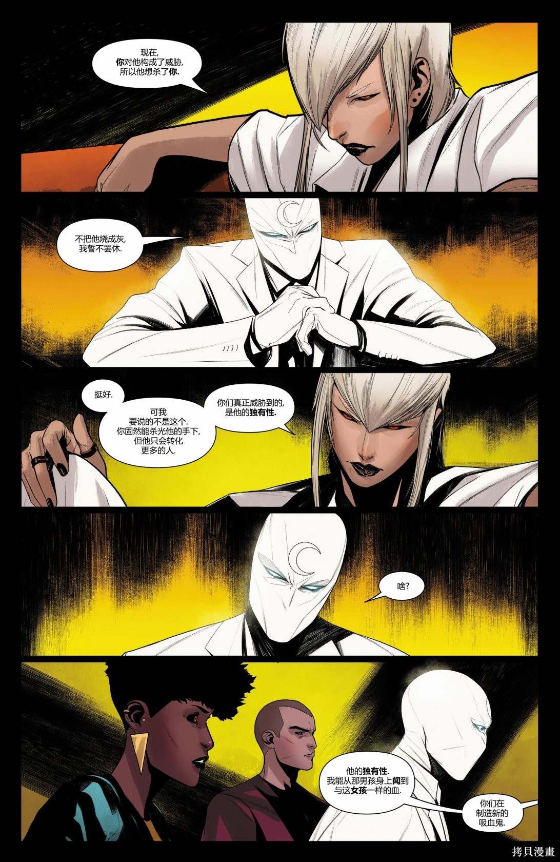 月光骑士是变节的教士,将孔苏的使命化为己任。对于他保护的人,这是赐福;对于猎人之月,这是亵渎。当孔苏之拳始庇护月神之敌吸血鬼?猎人之月将把他引回正途,无论付出多大代价。