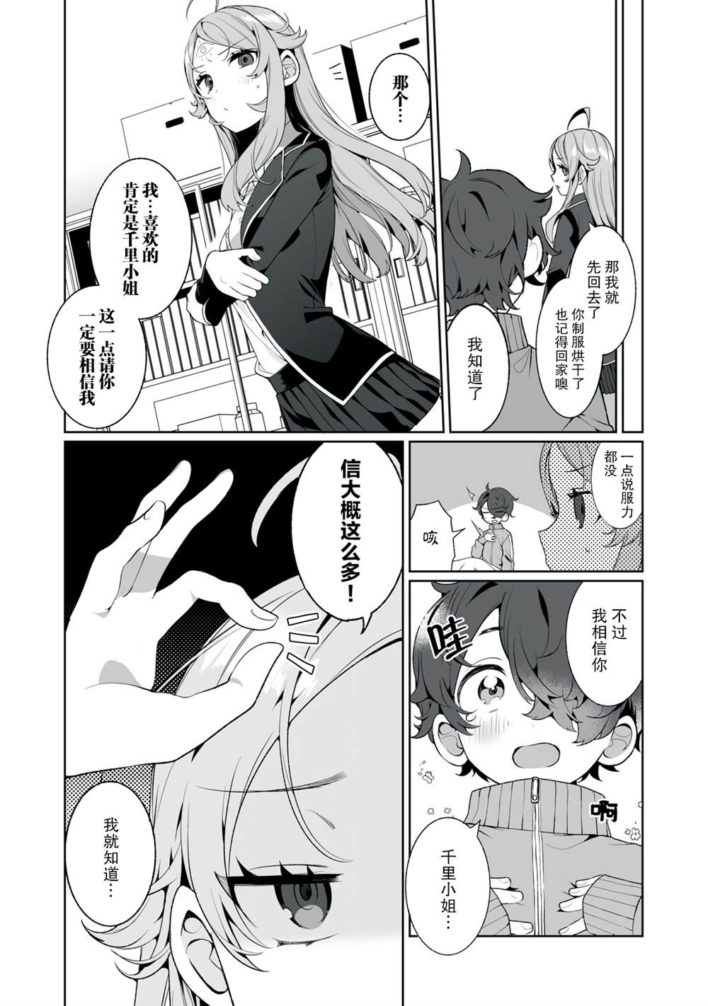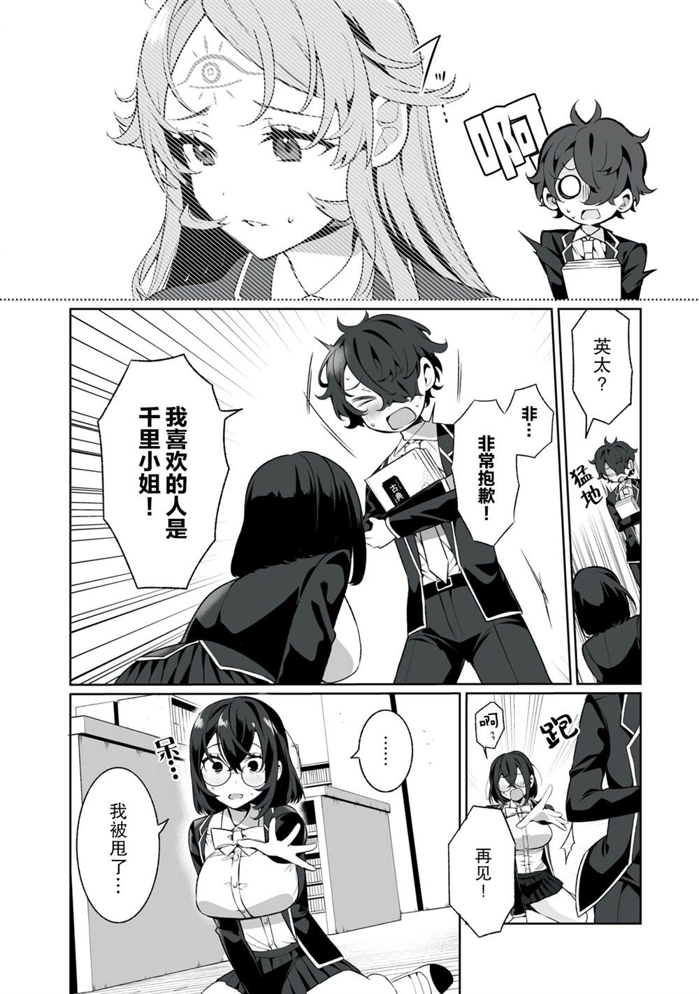 超能力JK×好色正太无法预测的爱情喜剧!!拥有预见未来的“千里眼”的少女千里千早。某天,她接受了比她小的少年英太的爱的告白。“果然和小毛孩交往还是…”但在千里眼所看到的未来里,和长大成人的英太交往的人正是自己!?他才是命中注定的人。但是现在始交往的话,必然社死!摇摆不定的少女和步步紧逼的正太的恋爱[]爱到底通向何方…![-折叠]