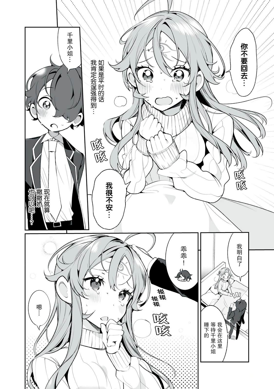 超能力JK×好色正太无法预测的爱情喜剧!!拥有预见未来的“千里眼”的少女千里千早。某天,她接受了比她小的少年英太的爱的告白。“果然和小毛孩交往还是…”但在千里眼所看到的未来里,和长大成人的英太交往的人正是自己!?他才是命中注定的人。但是现在始交往的话,必然社死!摇摆不定的少女和步步紧逼的正太的恋爱[]爱到底通向何方…![-折叠]