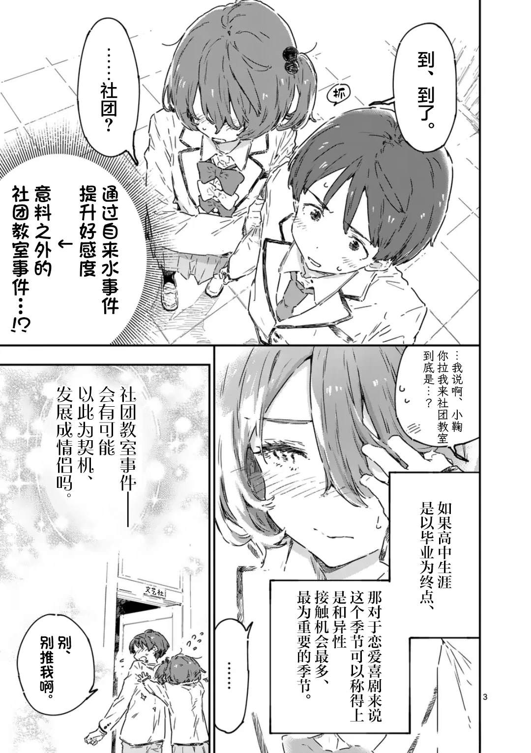 「请给我恋之水」本子和高志是青梅竹马,可是在高志打网球之后,两人渐渐疏远了。高志即将到美国留学,他想在出国前和本子重修旧好…「美子是学长的小白兔」美子向心仪的学长告白,没想到学长会答应跟她交往,是因为美子长得很像学长以前养的宠物兔…?「不良少女看星星」喜欢星星的天子就读三流高中,不过她却喜欢上每天早[]早上坐同一班电车,就读名门高中的雾峰同学,有一天,天子发现其实雾峰也很喜欢看星星[-折叠]