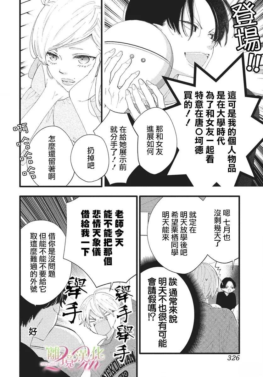 「请给我恋之水」本子和高志是青梅竹马,可是在高志打网球之后,两人渐渐疏远了。高志即将到美国留学,他想在出国前和本子重修旧好…「美子是学长的小白兔」美子向心仪的学长告白,没想到学长会答应跟她交往,是因为美子长得很像学长以前养的宠物兔…?「不良少女看星星」喜欢星星的天子就读三流高中,不过她却喜欢上每天早[]早上坐同一班电车,就读名门高中的雾峰同学,有一天,天子发现其实雾峰也很喜欢看星星[-折叠]