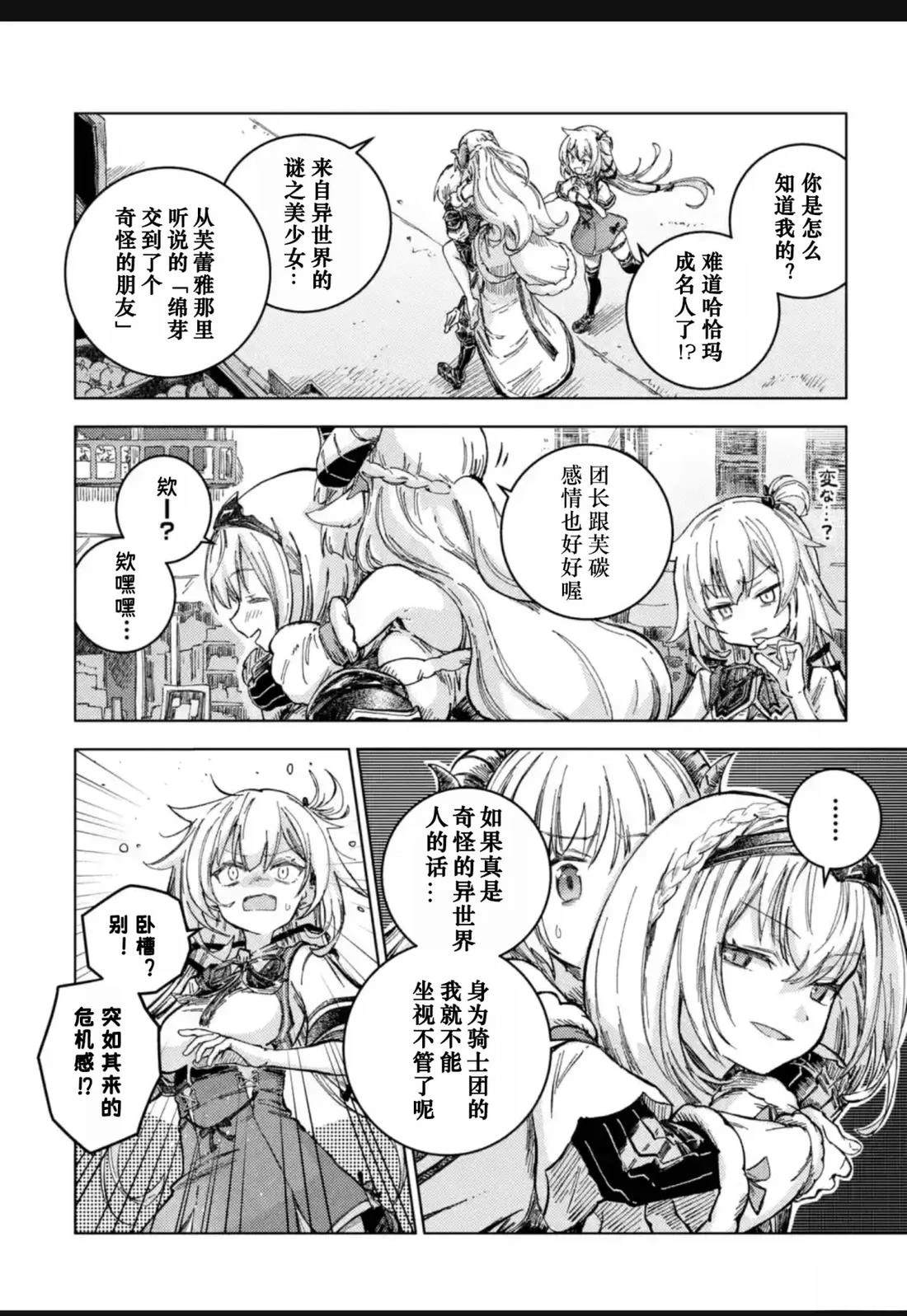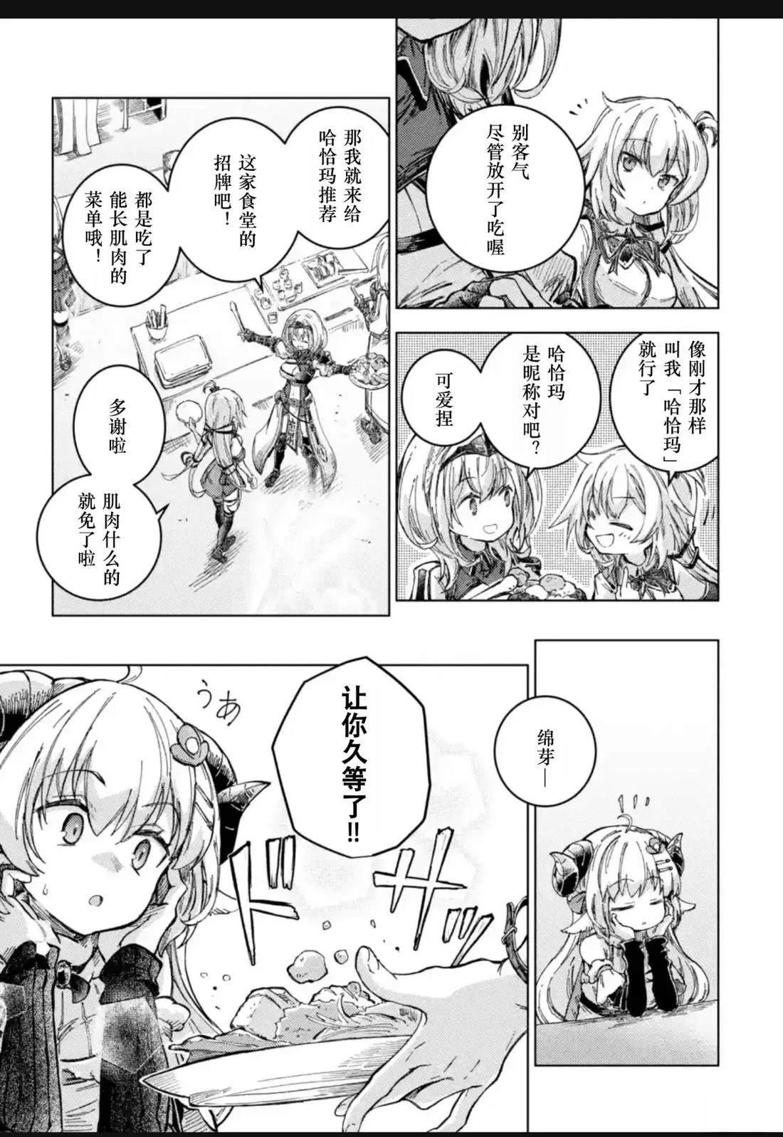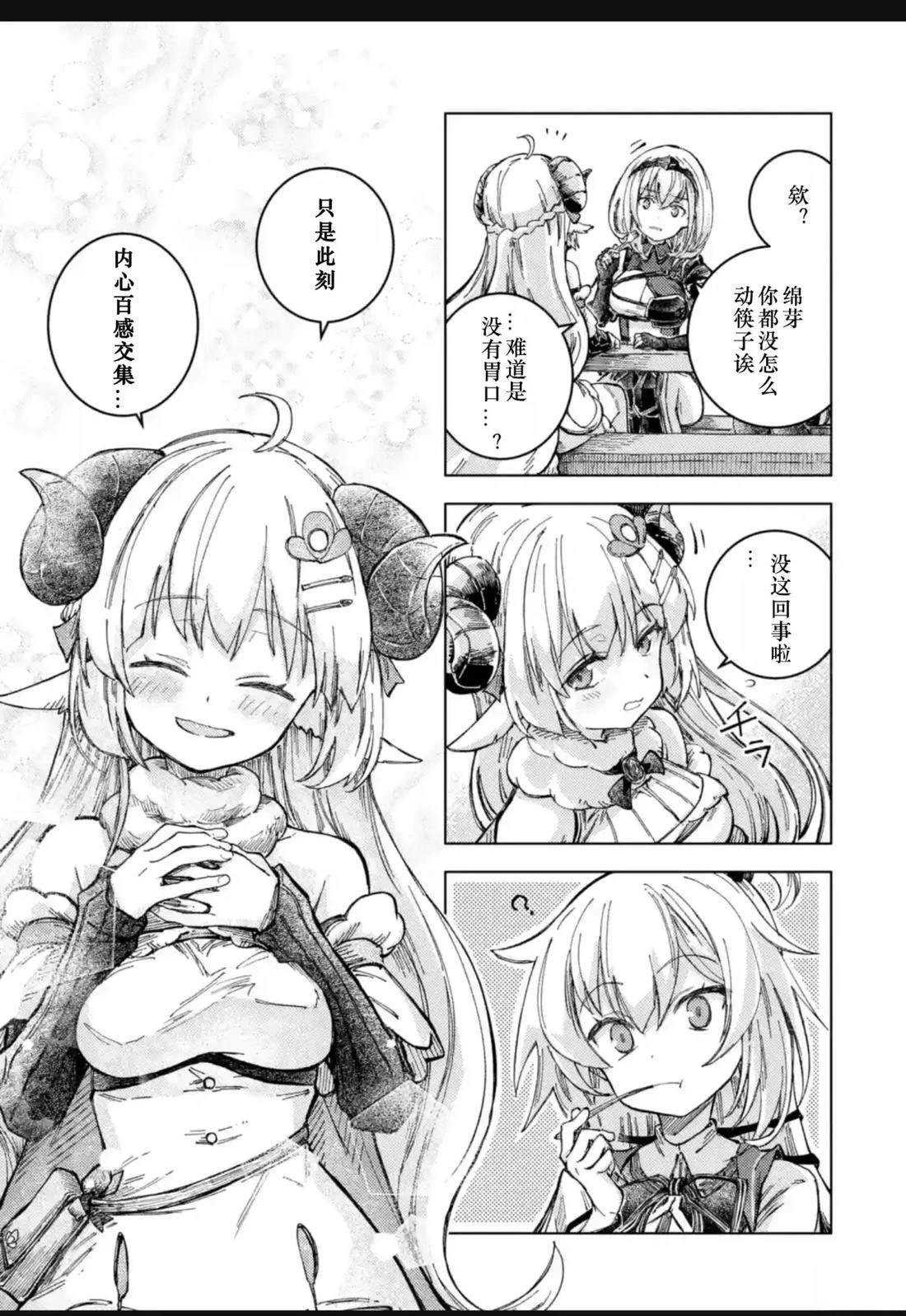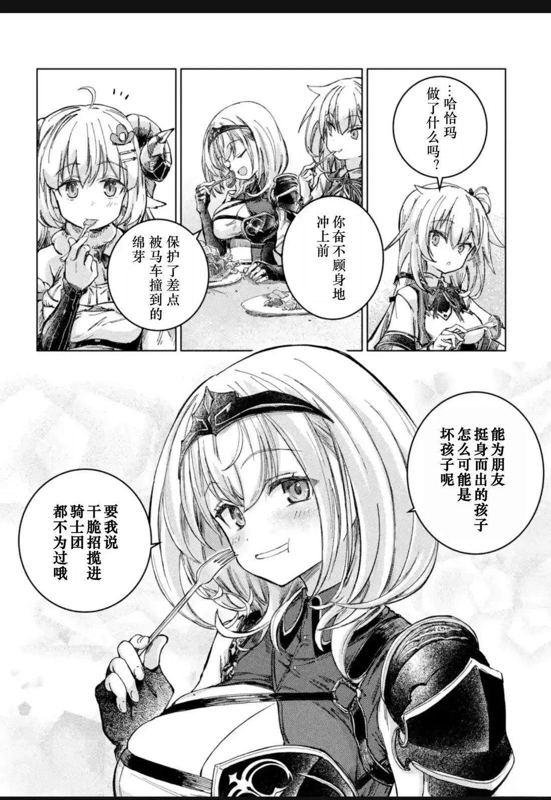 因为吃下自己亲手做的料理而受到冲击,被传送到异世界的少女「赤井心」,以及在异世界经营牧羊业、头上有角的少女「角卷绵芽」,还有人气咖啡馆「マチカドカフェ」的招牌女服务员「不知火芙蕾雅」,以及骑士团的团长「白银诺艾尔」。 少女们以「异世界的食谱」为契机相遇,在编织出无数笑容的同时,度过了一段幸福的时光[]光。这部作品以异世界创造企划「Hololive Alternative」的世界为舞台,实力派作家Johne将可爱又欢乐地描绘出这四位少女的异世界闹剧烹饪喜剧[-折叠]