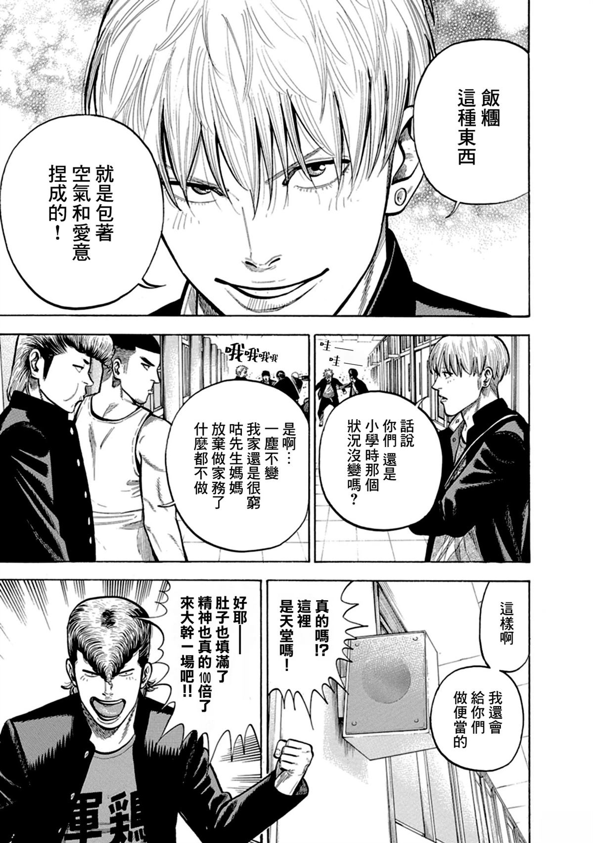 在拳头说话的“王森高中“,不良少年们用干架争夺顶点。梦想登顶的肯尼却觉醒另类生存之道——用厨艺征服全校!当平底锅取代指虎,蛋包饭秒杀组合拳!这个立志成为不良高中生妈妈的男人,要用中华炒勺打出一片天!最强不良×热血食戟,今日宴!