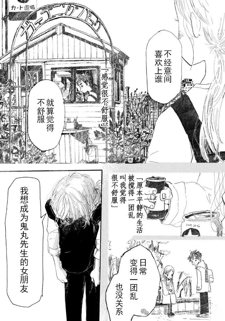 单相思的无奈,在被喜欢的人讨厌之前干脆自己变得讨厌的混乱的心,对喜欢的人过于强烈的思念而采取的奇行……不适合恋爱的主人公小文的“痛苦”和“奇怪”很可爱,是一部他人无法想象的作品。极其笨拙的小文的恋爱,在这样的小文身边却什么也做不了的恶灵小西的恋爱,到底会走向何方呢。