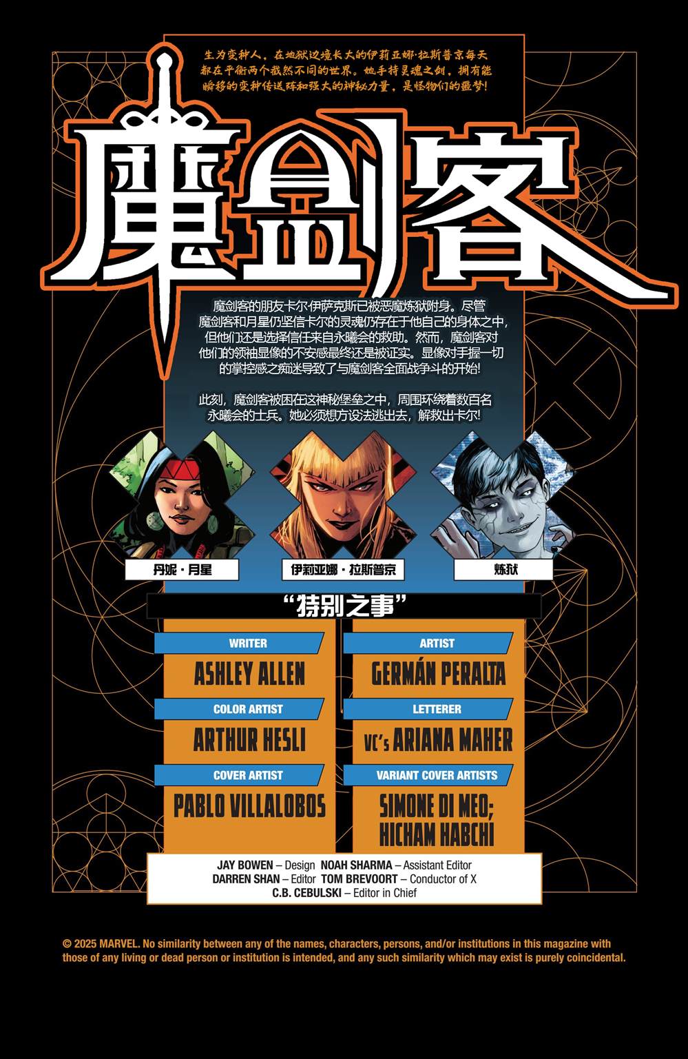 生为变种人,在地狱边境长大的伊莉亚娜·拉斯普京每天都在平衡两个截然不同的世界.她手持灵魂之剑,拥有能瞬移的变种人传送阵和强大的神秘力量,是怪物们的噩梦!曾经,克拉科亚岛屿国家是所有变种人的避风港,但如今它不复存在,变种人再次被迫流离失所,散布世界各地.而魔剑客和X战警正在奋力对抗这个不公的世界!