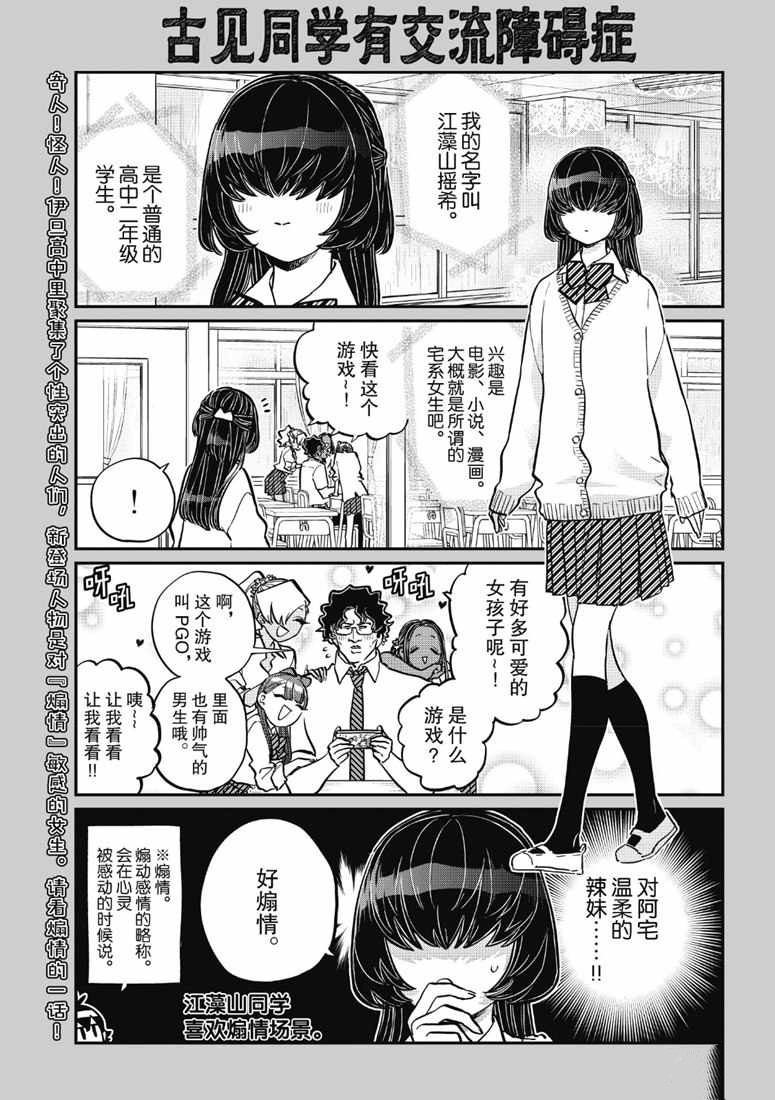 古见同学有交流障碍症漫画 ,少年sunday短篇五连弹的第一弹。 古见同学是美少女,站著就是艺术,坐著就是绝赞,走三步就会被人告白。可是她有交流障碍症!