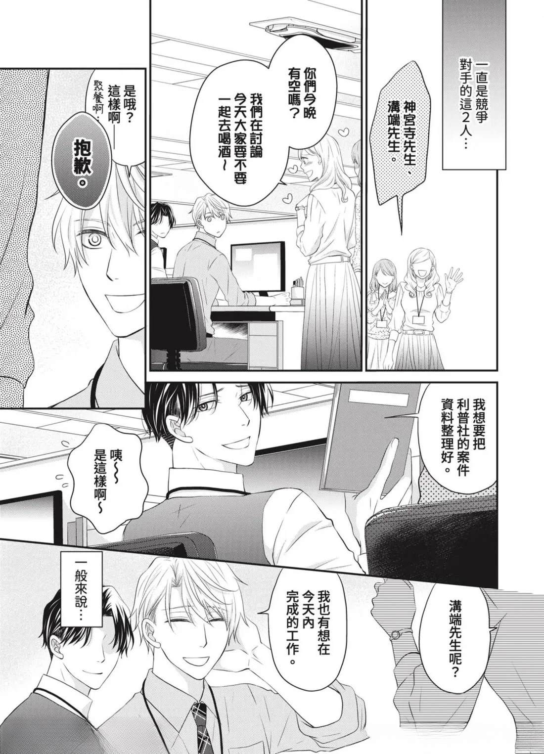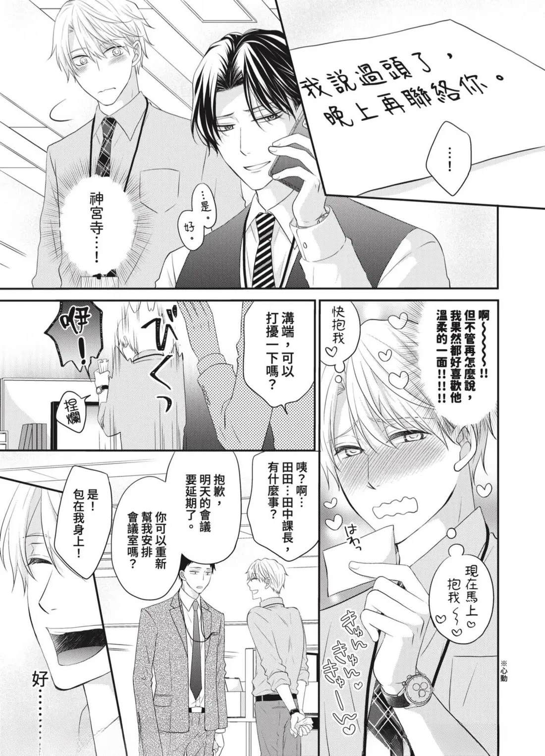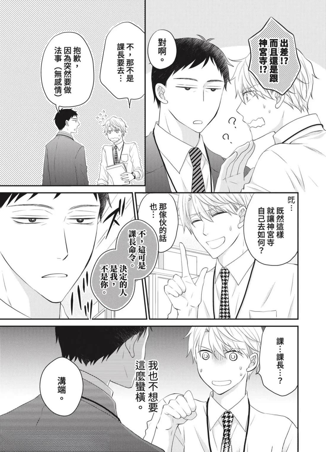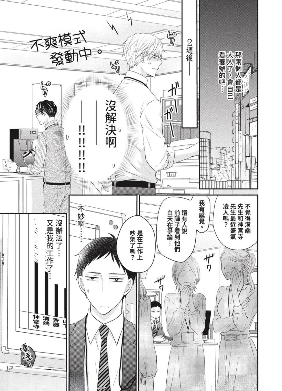 「管理部下的BL是上司的工作!」社内BL或许就是这样被妥善保护著…!?——平凡不起眼的课长.田中(40)某天,目击部下神宫寺和沟端在公司里做色色的事!便知道了他们秘密的BL关系。那之后,田中默默守护著两人的关系,并在私底下支持著他们…然而,两人却吵了架,甚至面临分手危机!?因为身为台柱的两人相处生硬[]硬,让业绩也大幅下降…为了公司,只好由我负责调停了…吗…!?全新观感的应援系BL漫画,幕[-折叠]