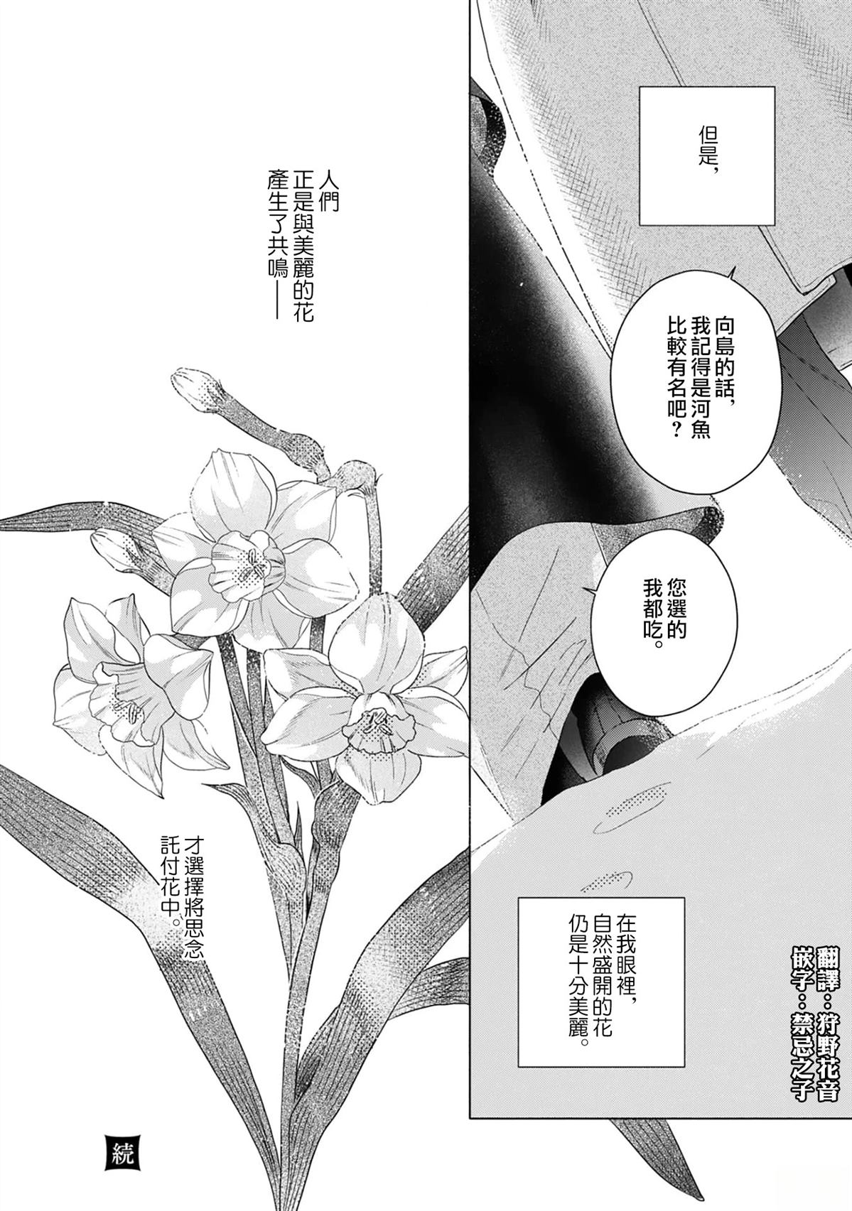 「本来以为你是个像花一样的男人。」花艺师中桐世渚,是世界级超模——浅樱润的杂志摄影幕后工作人员。世渚不明白润为什么要对他这么好,只能一直凝视著在华丽舞台上活跃的润。而拍摄工作结束后,润突然车邀他出游——世界级超模×花艺师,专情的美型青年与胆小的好人,即将一段花束般的恋情。