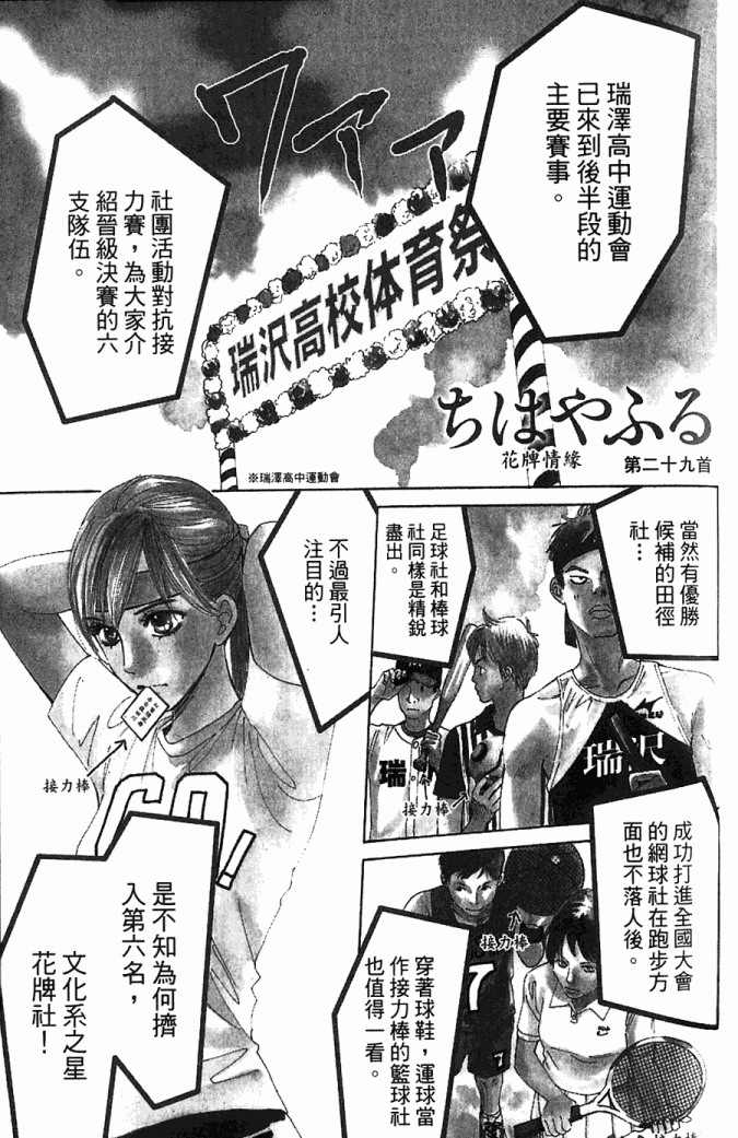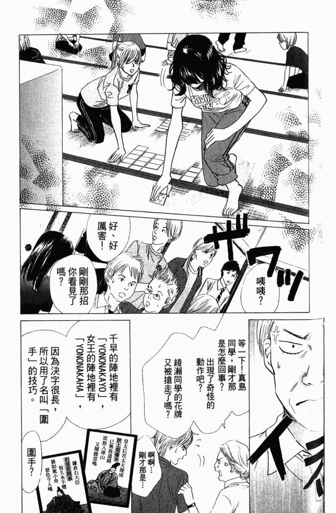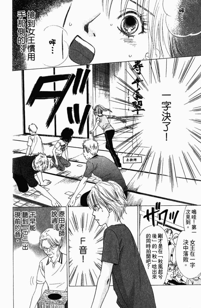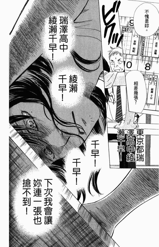 小六生千早认识了来自福井的转学生.新。新是个稳重沉默的孩子,但他却有项出人意料之外的才艺,就是小仓百人一首竞技花牌。新比任何人都快、比任何人都沉迷于抢牌的模样,给千早带来很大冲击。不过,令这样的新目不转睛的是…千早高人一等的「才能」──