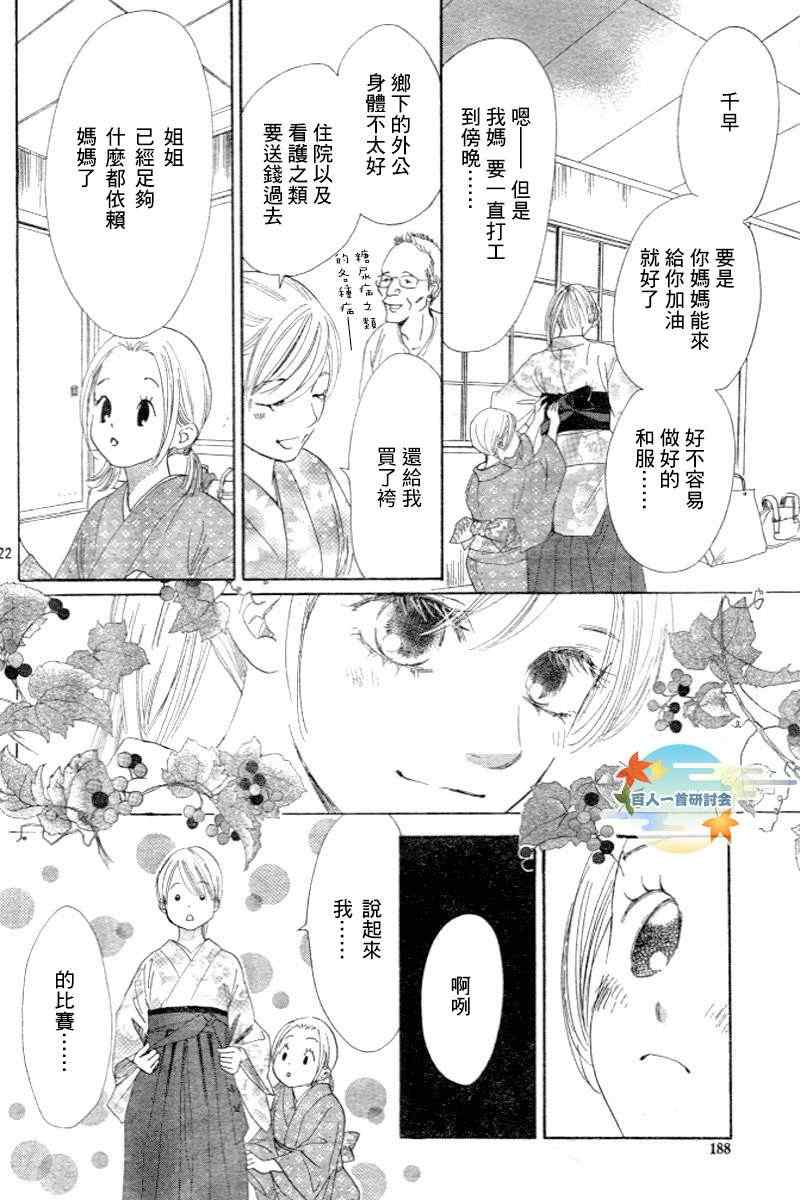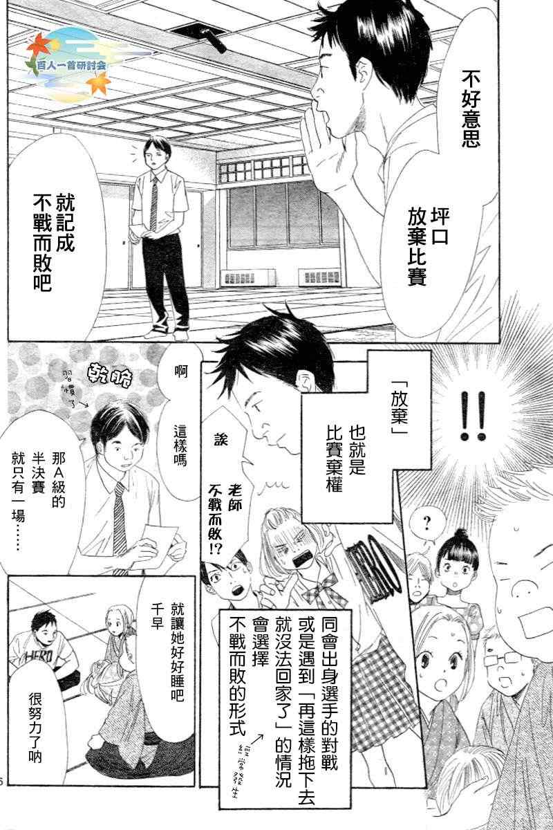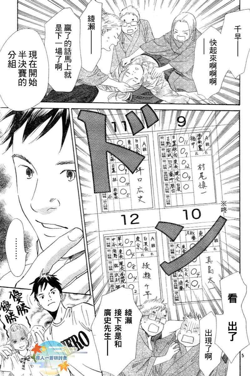 小六生千早认识了来自福井的转学生.新。新是个稳重沉默的孩子,但他却有项出人意料之外的才艺,就是小仓百人一首竞技花牌。新比任何人都快、比任何人都沉迷于抢牌的模样,给千早带来很大冲击。不过,令这样的新目不转睛的是…千早高人一等的「才能」──