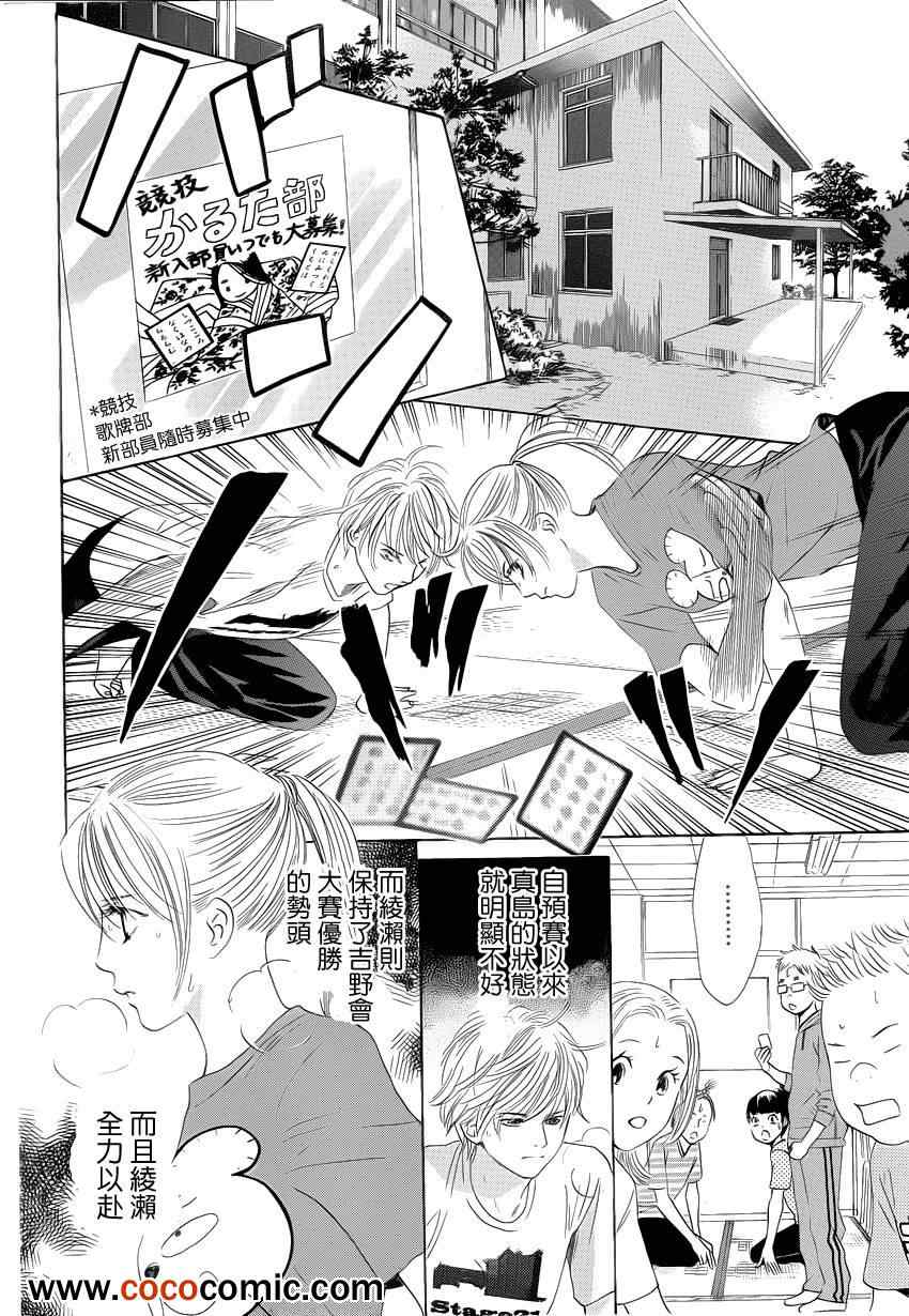 小六生千早认识了来自福井的转学生.新。新是个稳重沉默的孩子,但他却有项出人意料之外的才艺,就是小仓百人一首竞技花牌。新比任何人都快、比任何人都沉迷于抢牌的模样,给千早带来很大冲击。不过,令这样的新目不转睛的是…千早高人一等的「才能」──