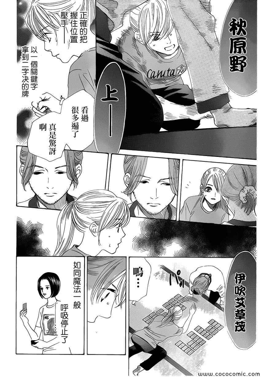 小六生千早认识了来自福井的转学生.新。新是个稳重沉默的孩子,但他却有项出人意料之外的才艺,就是小仓百人一首竞技花牌。新比任何人都快、比任何人都沉迷于抢牌的模样,给千早带来很大冲击。不过,令这样的新目不转睛的是…千早高人一等的「才能」──