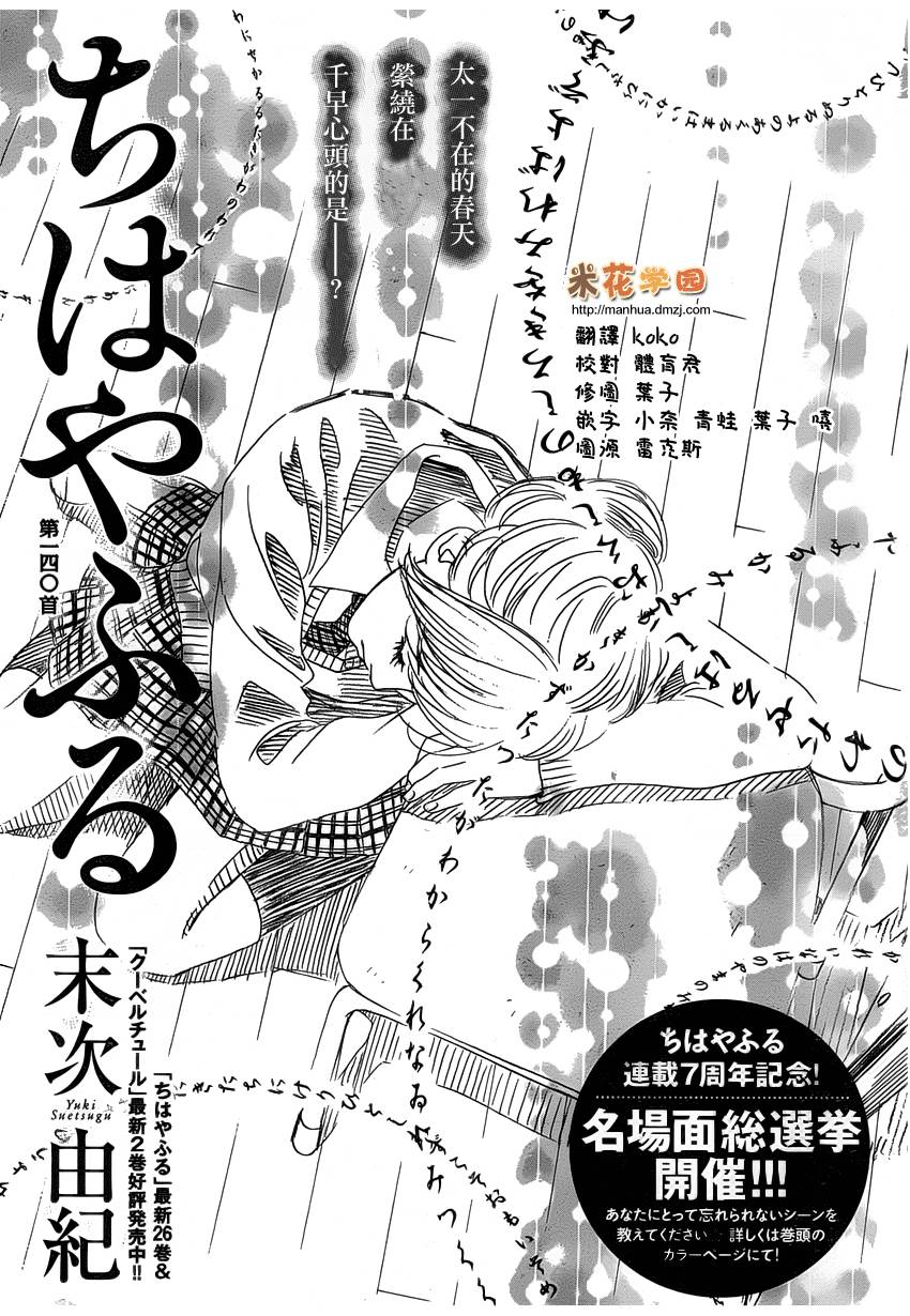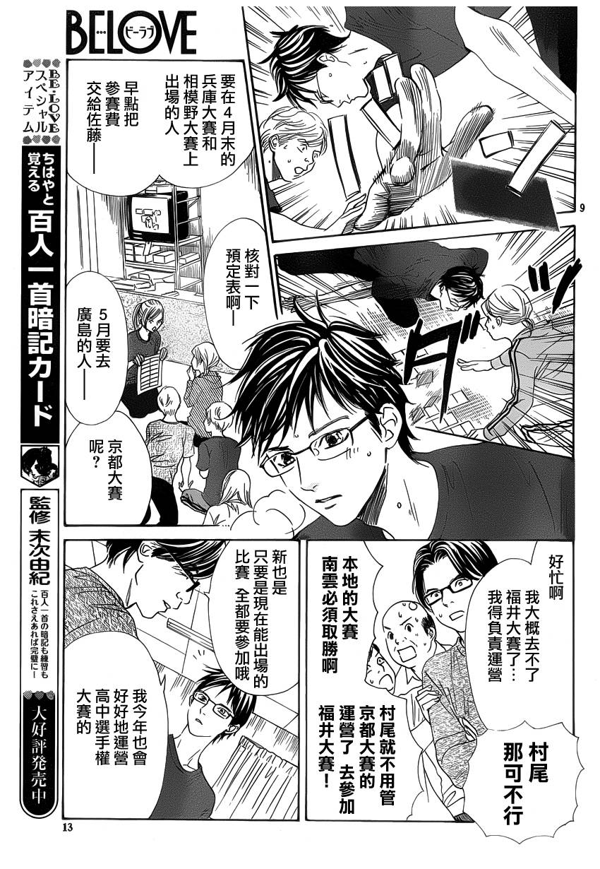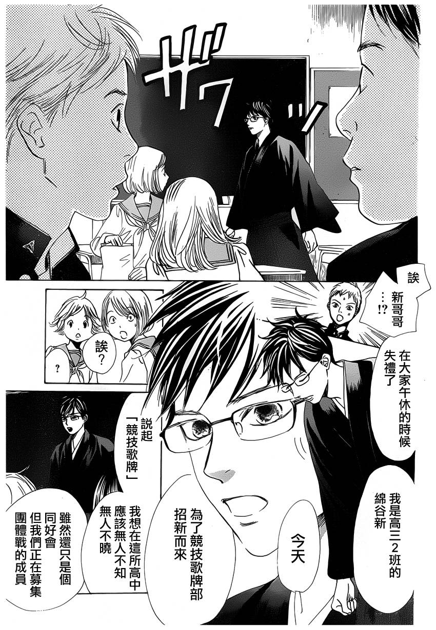 小六生千早认识了来自福井的转学生.新。新是个稳重沉默的孩子,但他却有项出人意料之外的才艺,就是小仓百人一首竞技花牌。新比任何人都快、比任何人都沉迷于抢牌的模样,给千早带来很大冲击。不过,令这样的新目不转睛的是…千早高人一等的「才能」──