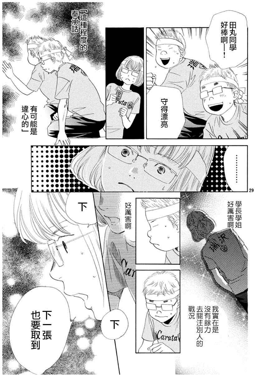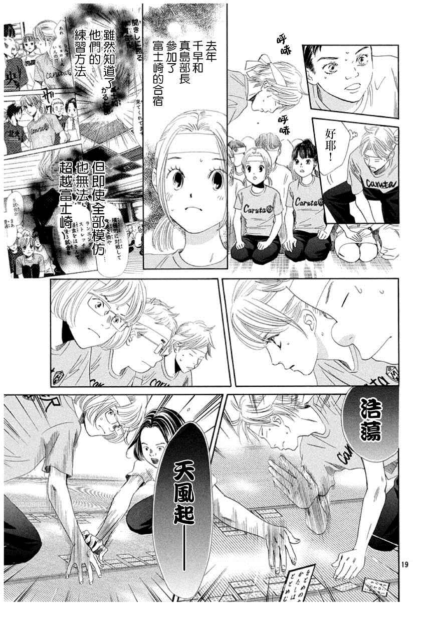 小六生千早认识了来自福井的转学生.新。新是个稳重沉默的孩子,但他却有项出人意料之外的才艺,就是小仓百人一首竞技花牌。新比任何人都快、比任何人都沉迷于抢牌的模样,给千早带来很大冲击。不过,令这样的新目不转睛的是…千早高人一等的「才能」──