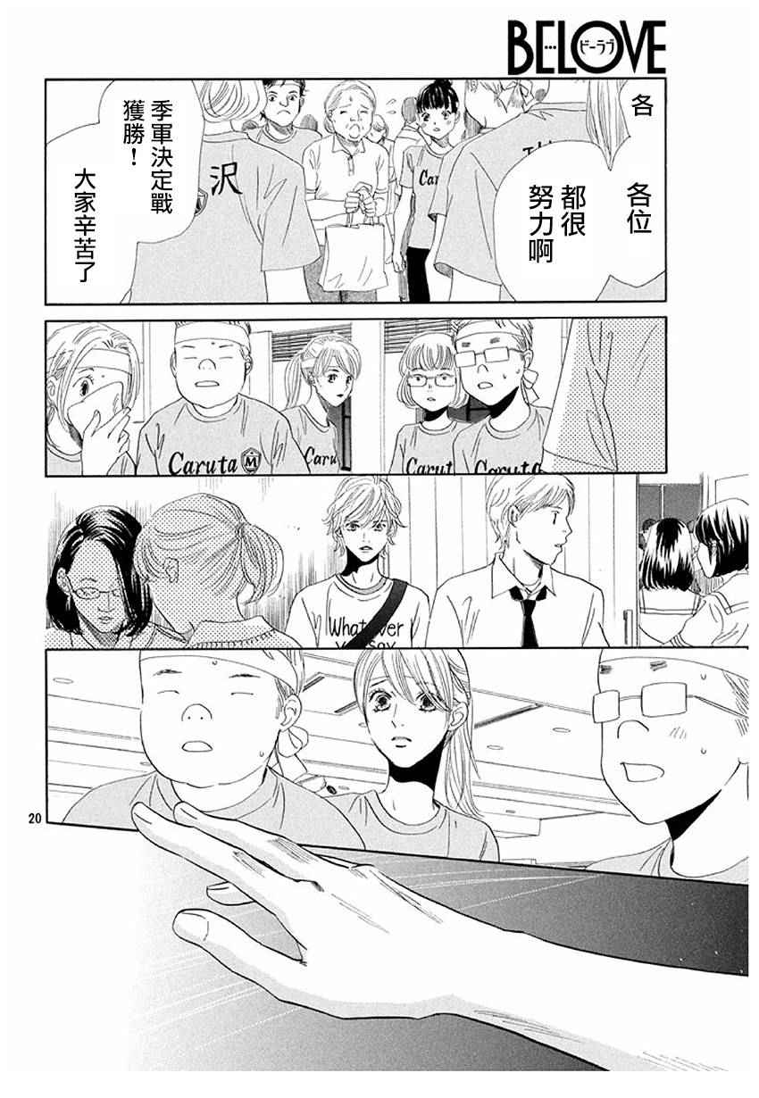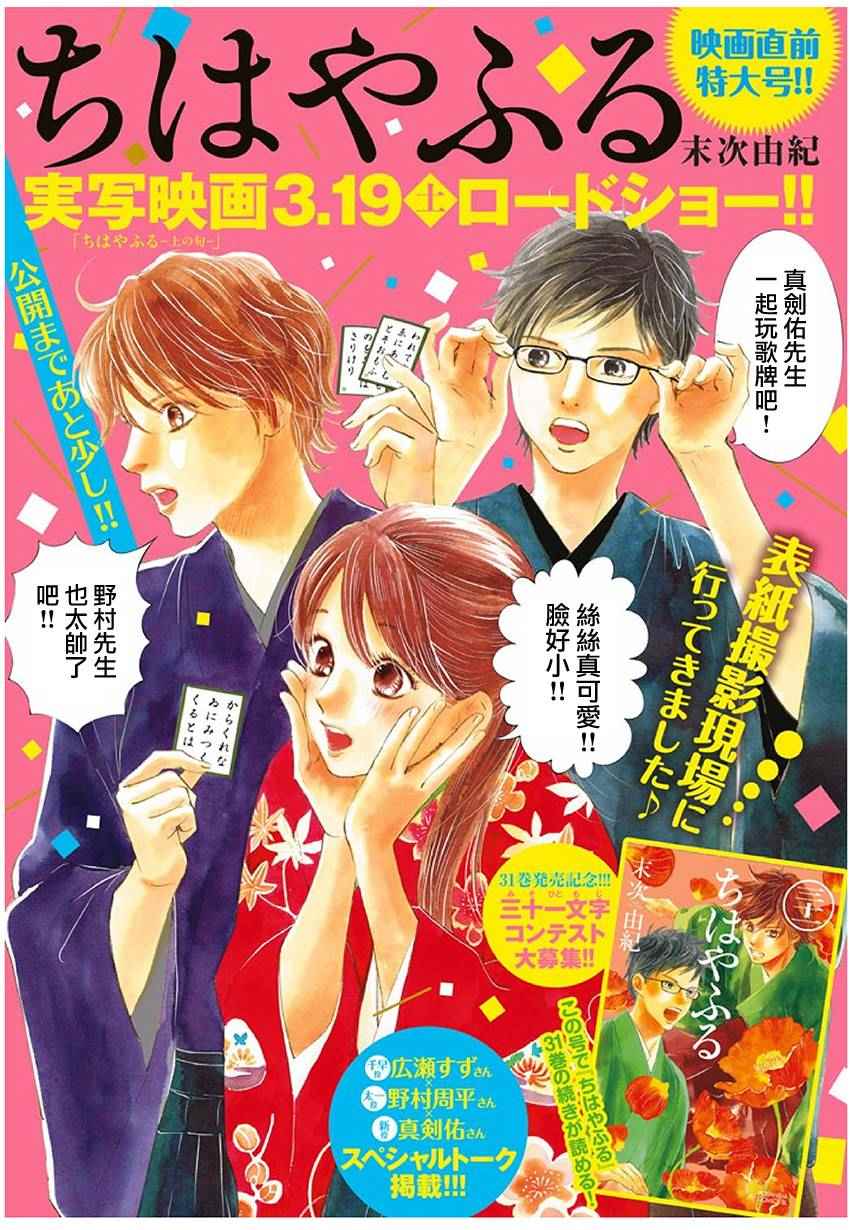 小六生千早认识了来自福井的转学生.新。新是个稳重沉默的孩子,但他却有项出人意料之外的才艺,就是小仓百人一首竞技花牌。新比任何人都快、比任何人都沉迷于抢牌的模样,给千早带来很大冲击。不过,令这样的新目不转睛的是…千早高人一等的「才能」──