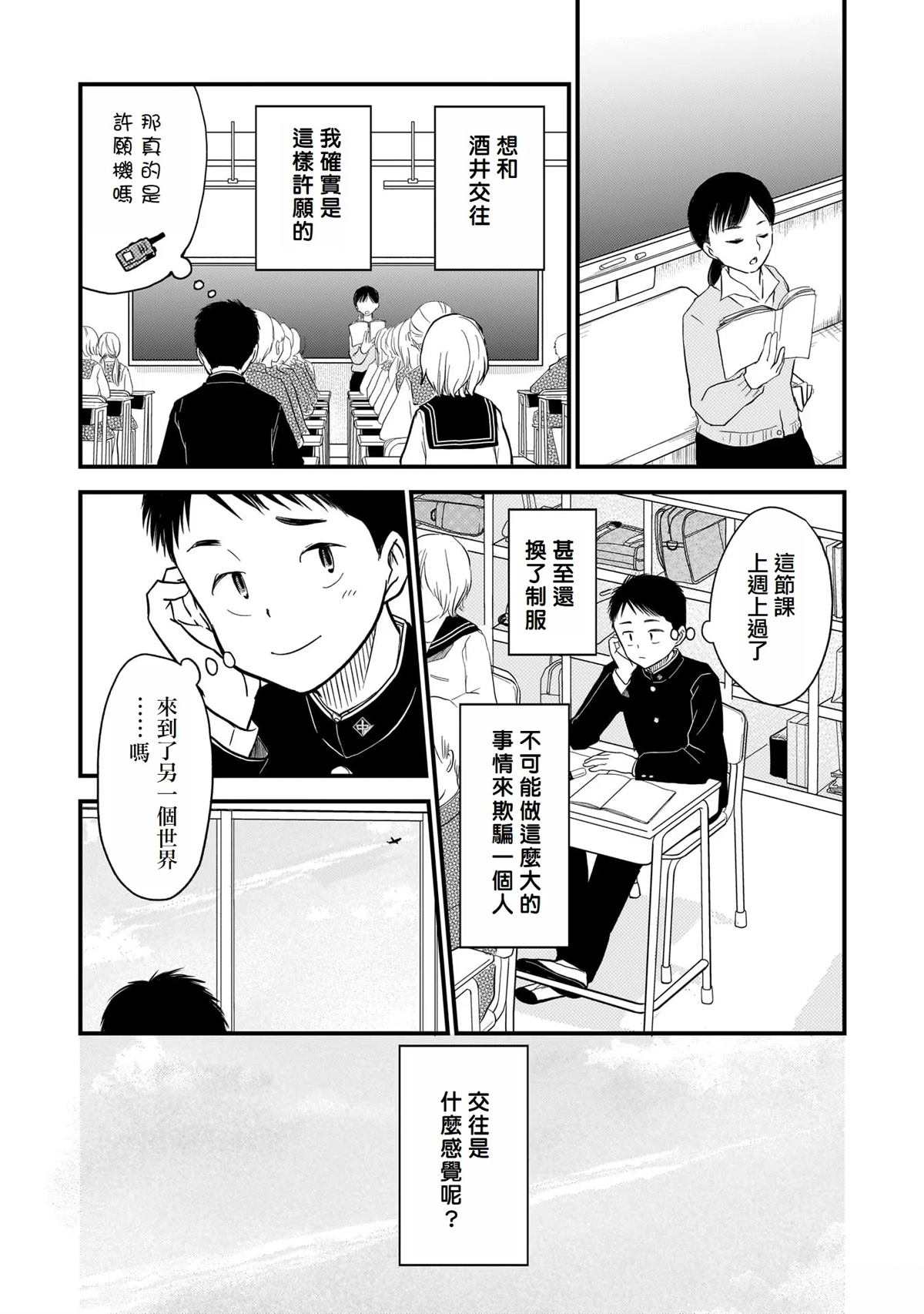 牧濑喜欢班上活泼的女孩酒井,但总是无法表达自己的真心。某天,状况异常的酒井像是牧濑的女朋友般亲密地对待他……?这是一个穿梭于两个世界的中学生青春爱情故事!