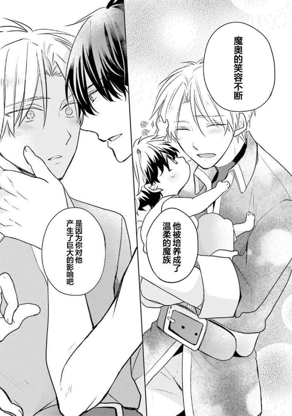 魔王路易和勇者杰德。 曾经不知道对方的身份而坠入爱河的敌对的两人,在乡下里,一边养育著未来的魔王魔奥,一边平静地生活著。 被认为「打倒魔王,将世界引向了和平」的杰德现在每天都在做家务,为育儿而奋斗。 零食是亲手制作的、烦恼是讨厌番茄,稍微离一点就会有恶作剧!! 一切都是为了将魔奥培养成心地善良的魔[]魔王,实现【人和魔族的共存】 路易不但不协助,反而说著「再更加关心我吧」对小孩子闹别扭…![-折叠]