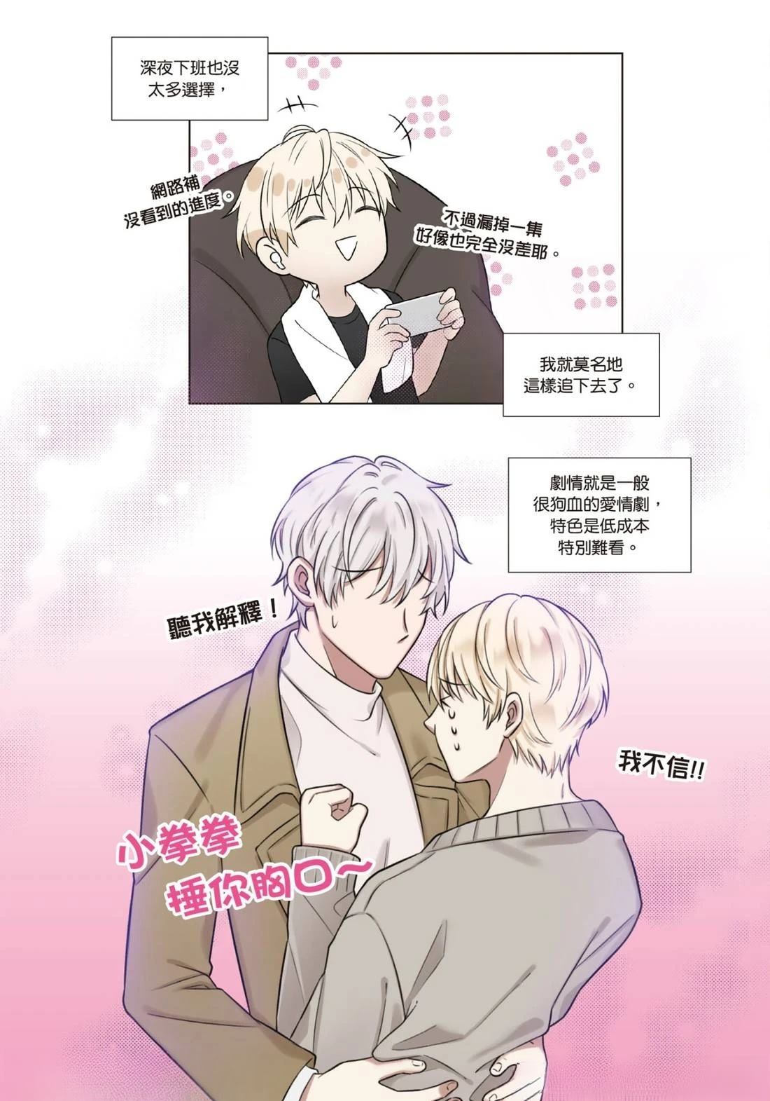 ★再老哏还是要穿越的吧!两男抢一耽美世界之生存铁则首次公!保镳季海安原本是个与甲甲世界无缘的钢铁直男,却在一次下班后打电视时发现,狗血耽美剧里夹在暖男明星和霸道总裁之间的小受男主角竟与自己同名!?不自觉就追了起来。这八点档BL剧故事简单老哏,季海安一边吐槽一边追,也不知不觉追到了大结局,加班蹲厕[]厕所也要准时看完,迎来意料中的Happy Ending后神清气爽……但这剧可没告诉他——一走出厕所就会穿越到里面去啊!![-折叠]